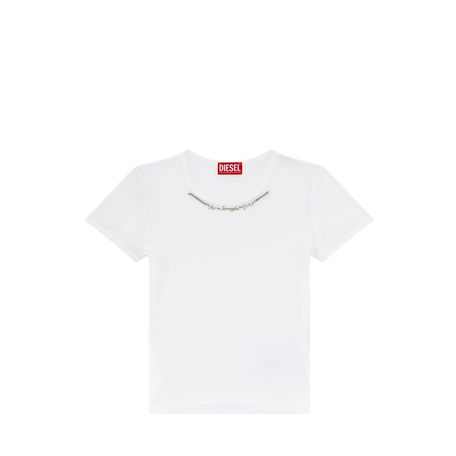 This women’s ribbed-jersey top is crafted using ECOVERO™ viscose fibres mixed with stretch to create a comfortable, super-snug fit. The chain embellishment draped beneath the neckline is strung with plaques spelling out the iconic ‘For Successful Living’ slogan and can be detached. -