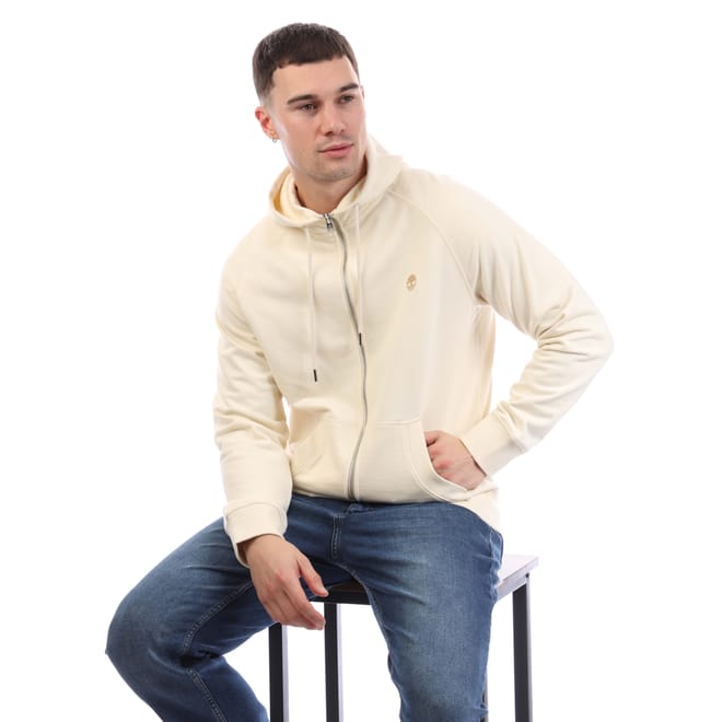 Mens Timberland Exeter River Full-Zip Hoodie in beige.