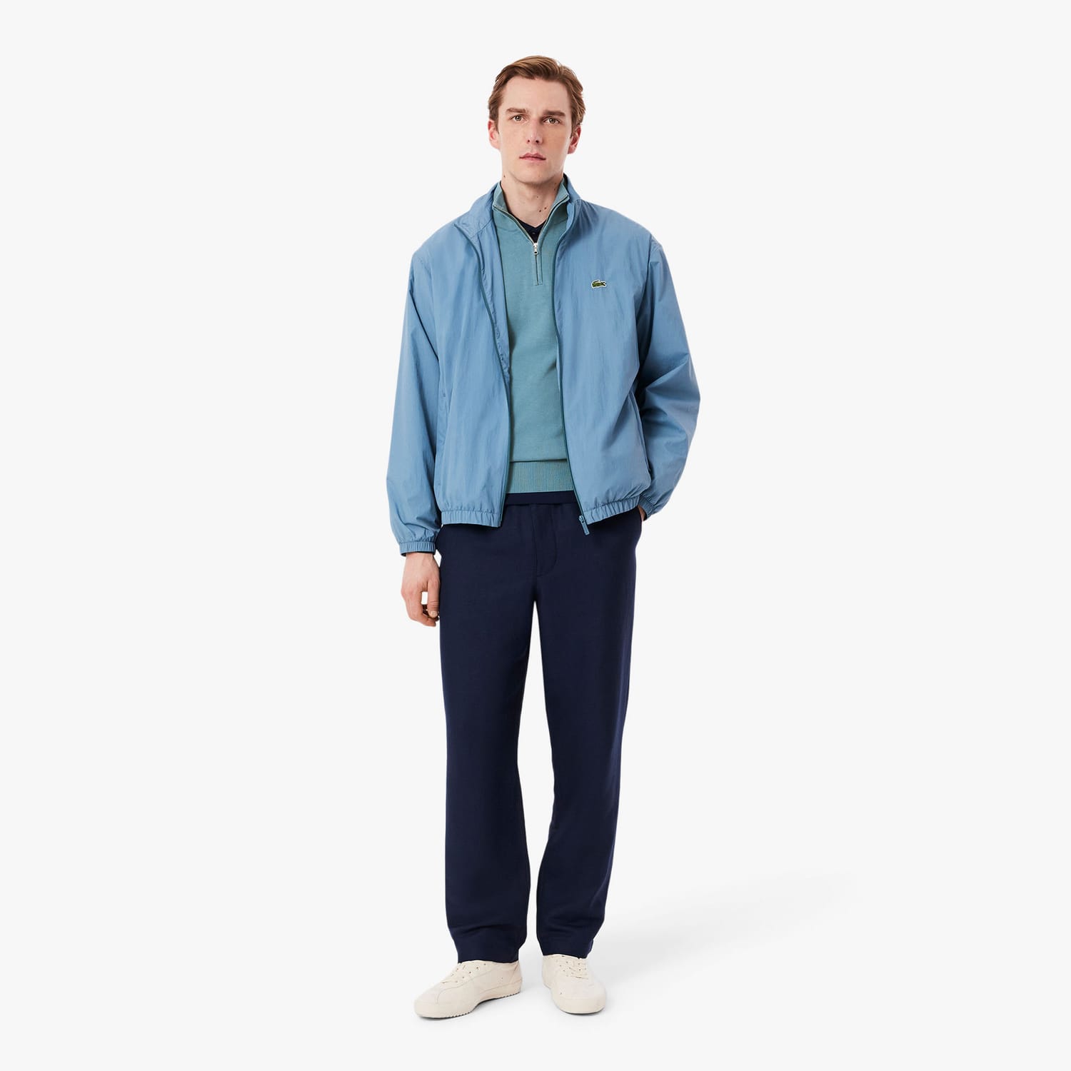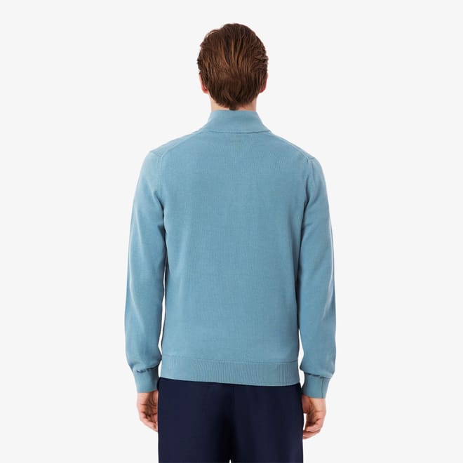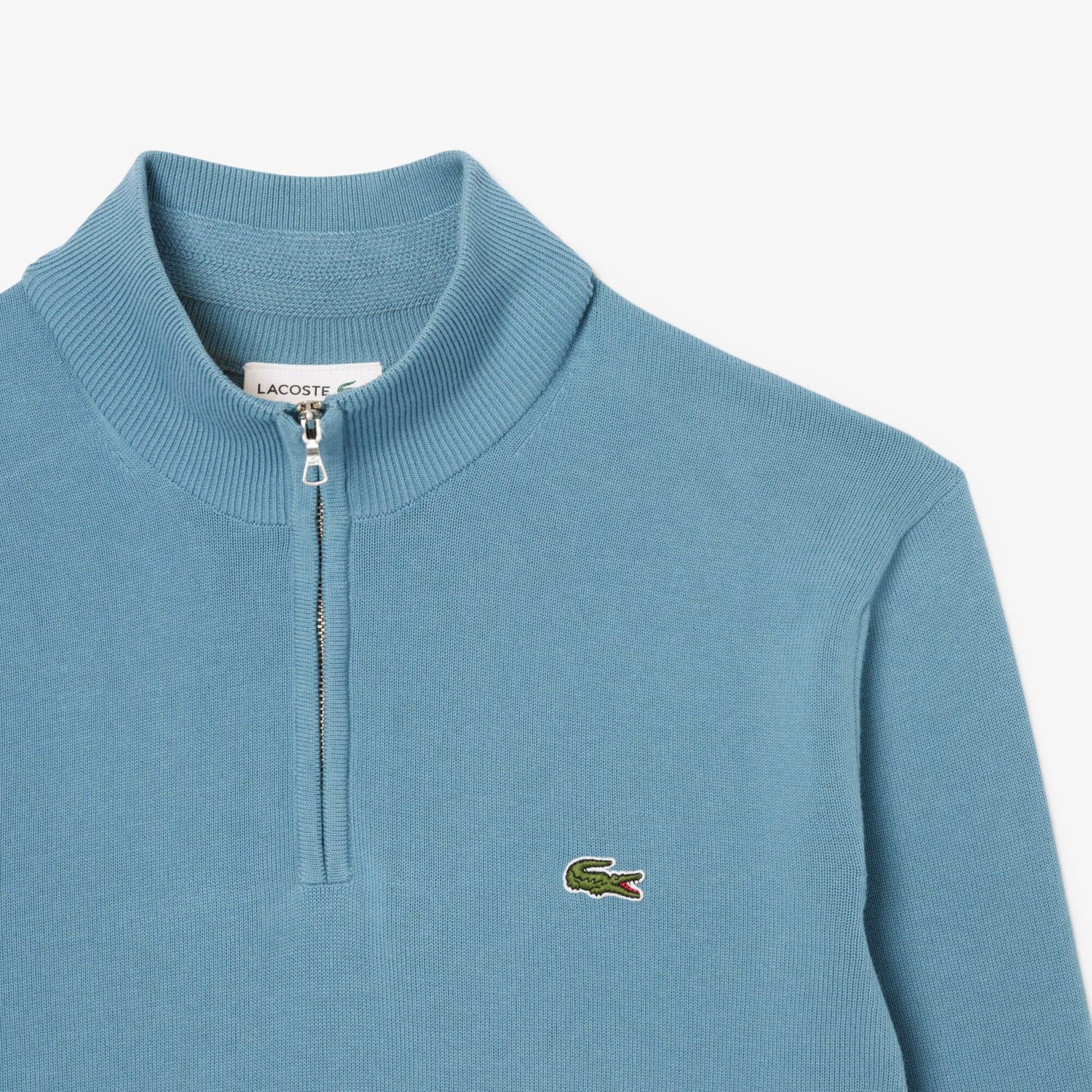 Mens Lacoste High Zipped Neck Plain Cotton Sweater in limestone