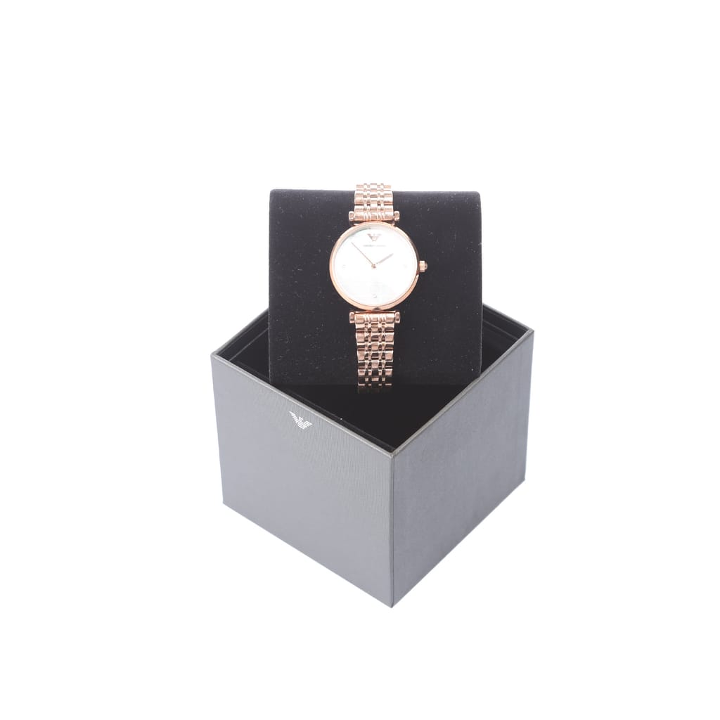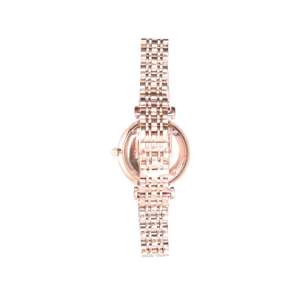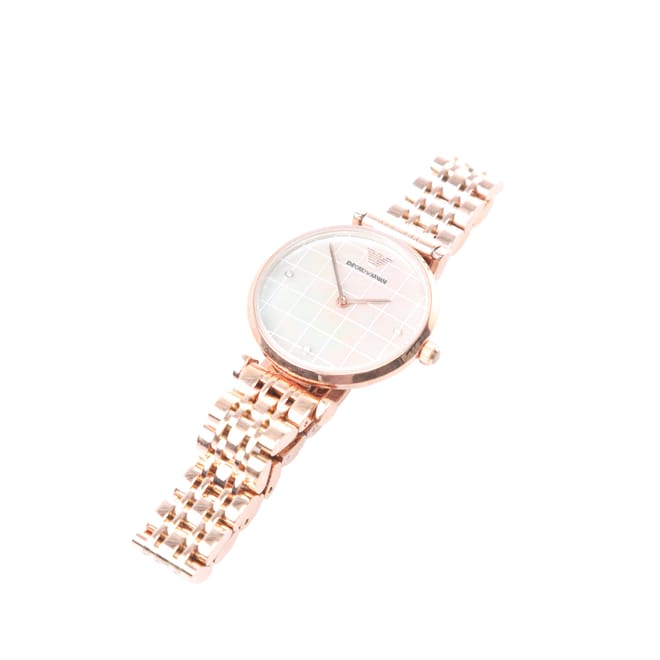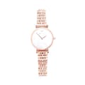 Case Material:Stainless Steel Case Diameter: 32mm (a smaller, elegant size) Case Colour: Rose Gold-tone Dial: Grey Mother of Pearl with a white grid pattern Water Resistance: 30 metres (3 ATM) -