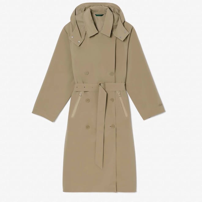 Women's Lacoste Two-Ply Piqué Oversized Trench Coat Front pockets: