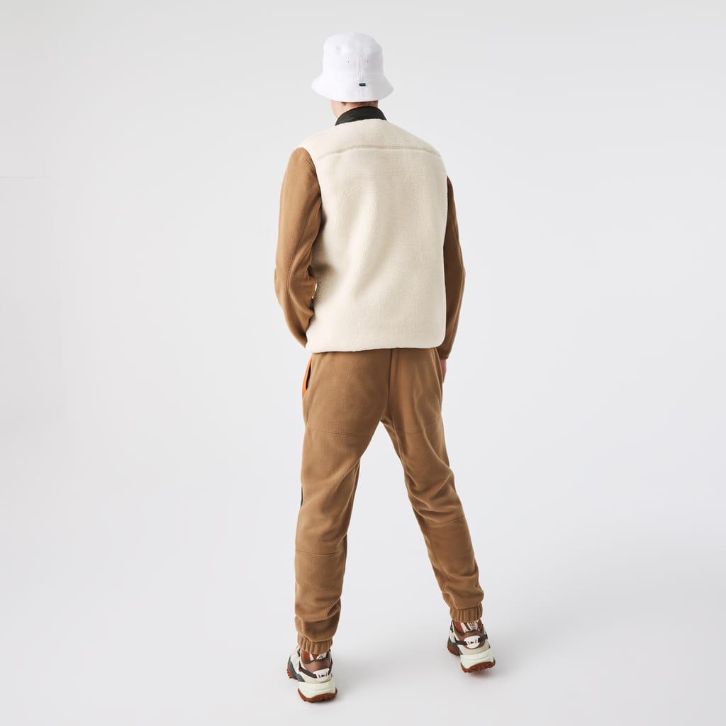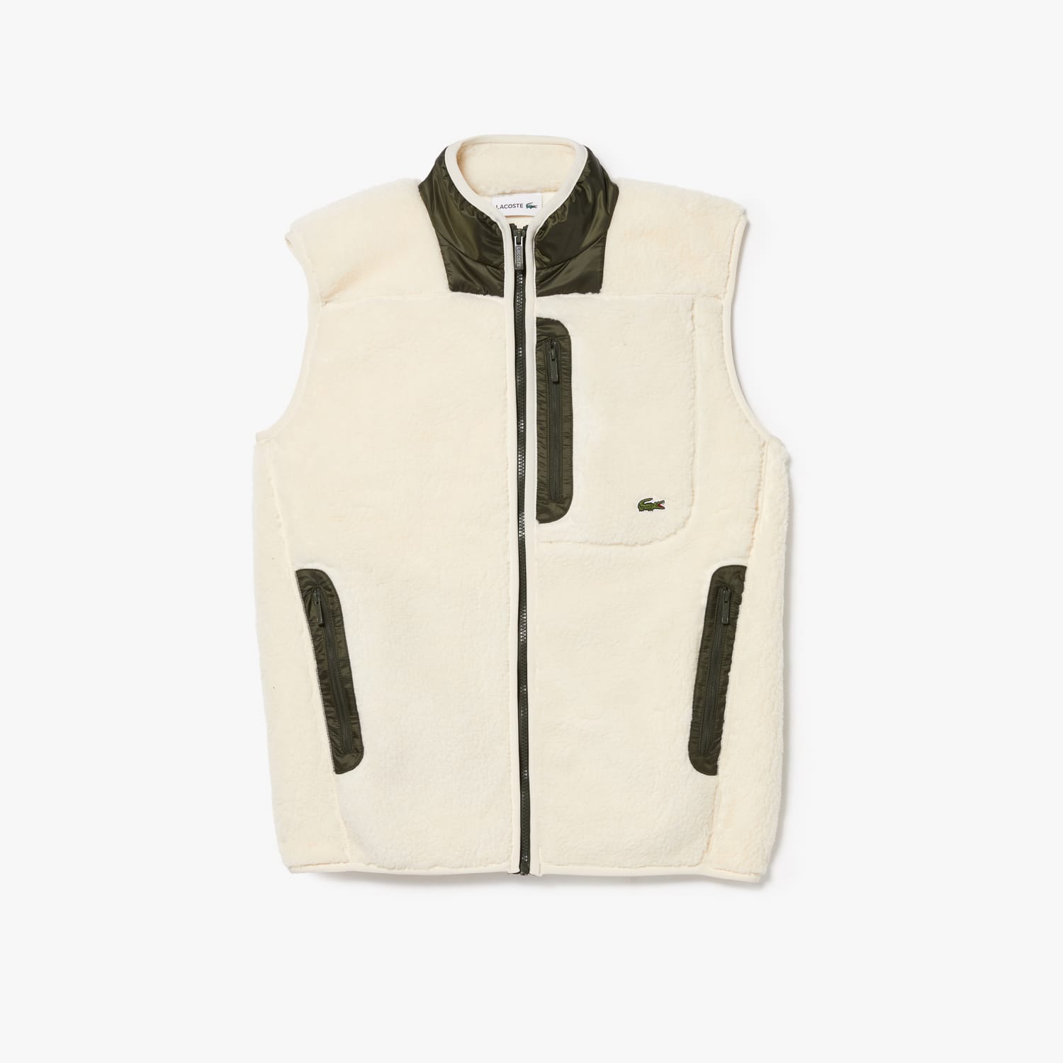 Mens Lacoste Sherpa Fleece Vest in cream.