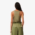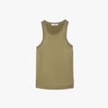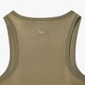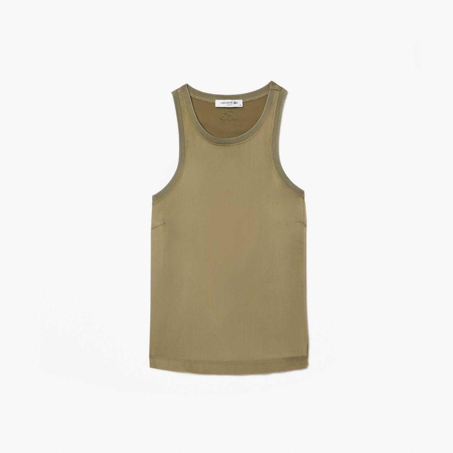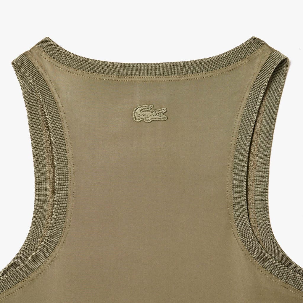 "Slim Fit Fluid Satin Tank Top Fluid, stretchy satin fabric Slim fit Cutaway racer back Fine ribbed finish Tonal crocodile on back" -