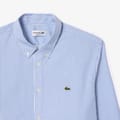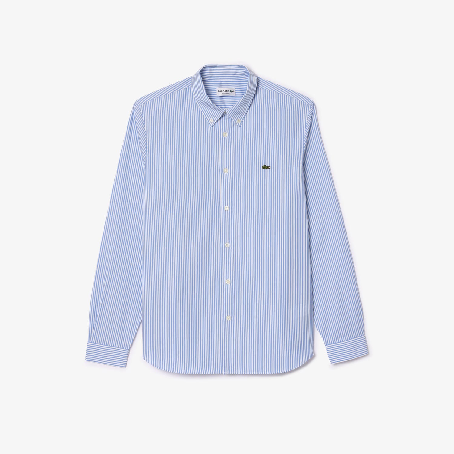 The Lacoste shirt is a true menswear essential. Made from a premium cotton pinpoint, part way between a poplin and an Oxford fabric, with a woven stripe design. Featuring genuine mother-of-pearl buttons and a short collar for an elegant finish.