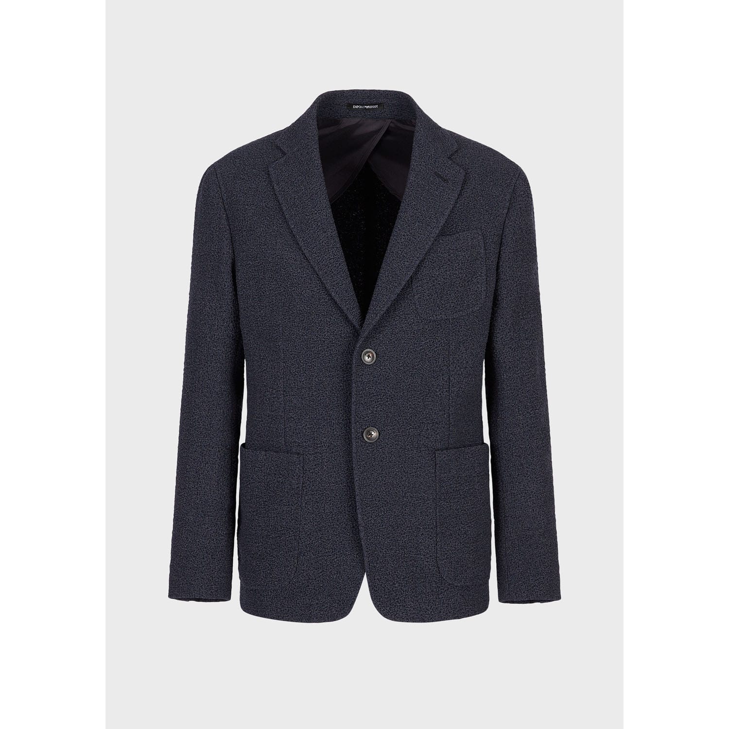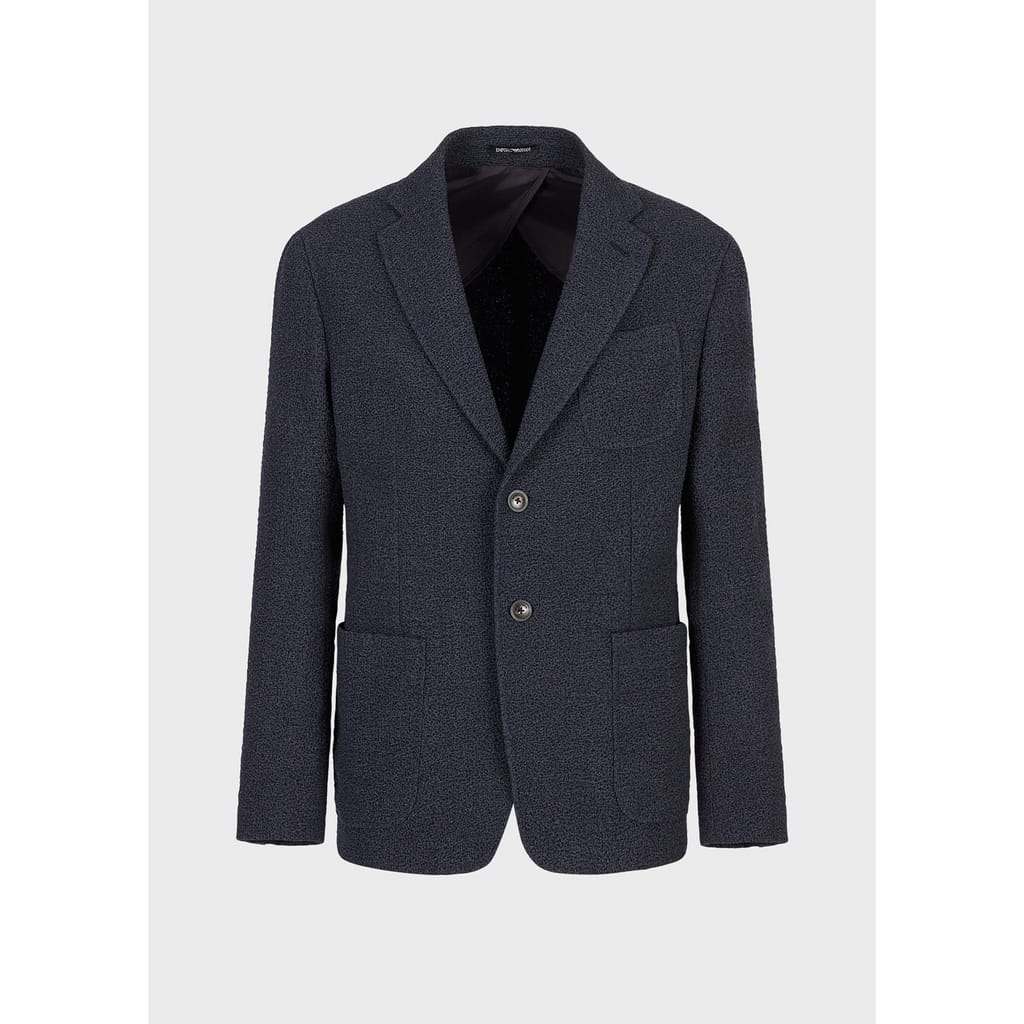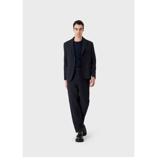 Peaked lapels. Two button closure. Chest pockets. Front pockets. Fully lined. -
