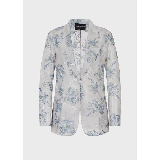 Womens Emporio Armani Tulle Blazer with Sequins and Embroidery in fantasia