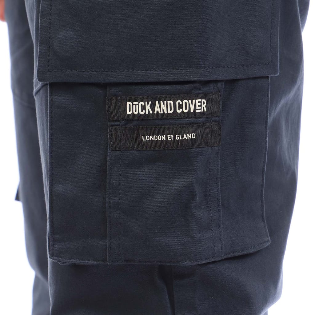 Mens Duck and Cover Chemmer Woven Joggers in navy.
