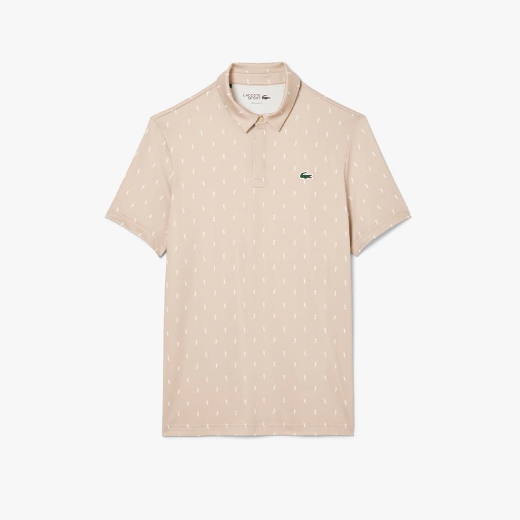 This polo shirt, tried and tested by Lacoste players, is designed to perform on the green. Made from stretch jersey for freedom of movement, with added sun protection and Ultra Dry technology for comfort. The invisible snap closure and print create a unique result, blending fashion and sporting style.