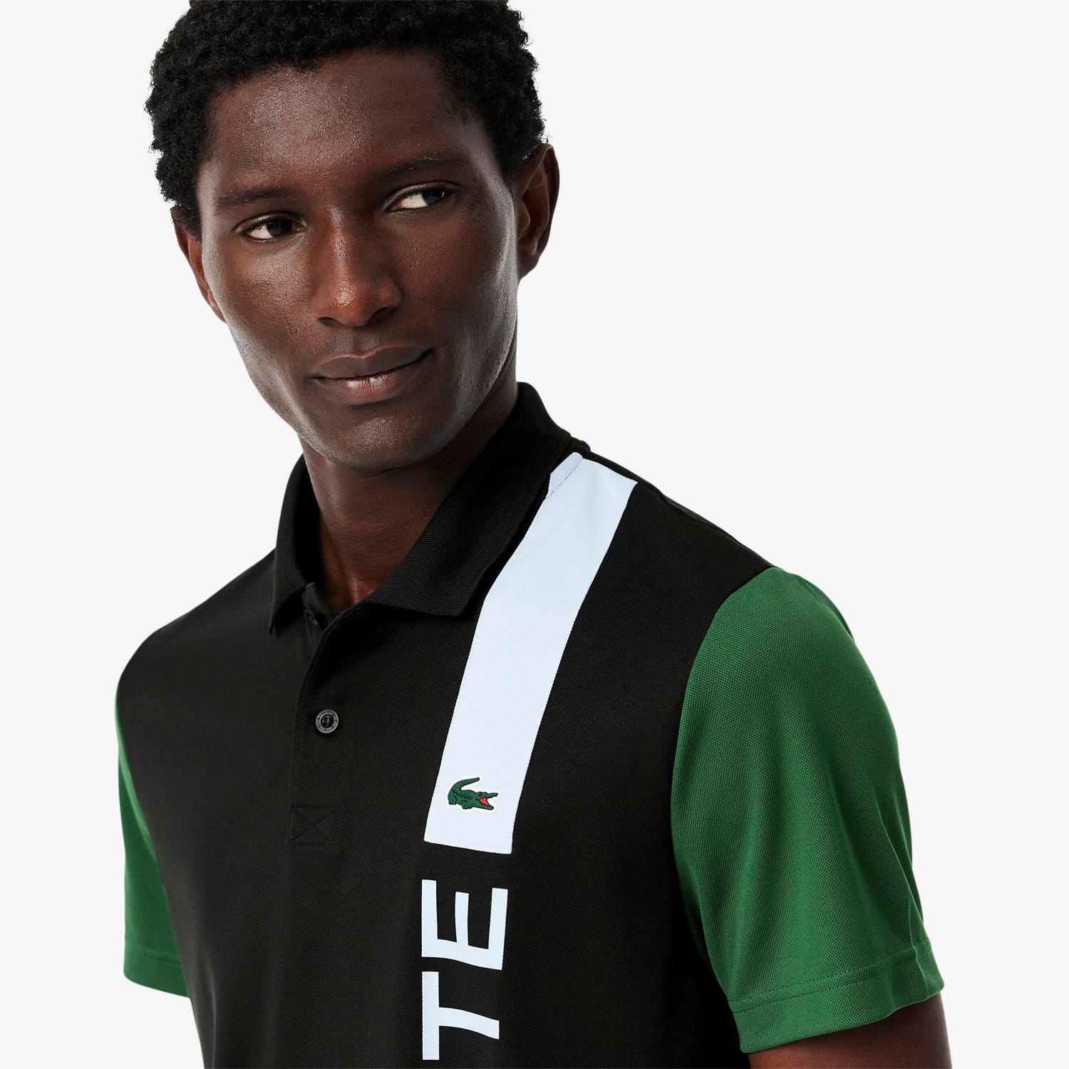 Mens Lacoste Sport Ultra Dry Print Branding Polo Shirt in black / green / rill