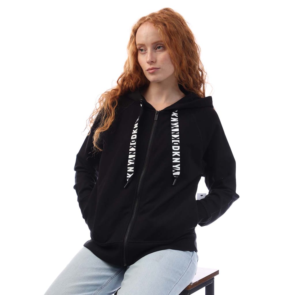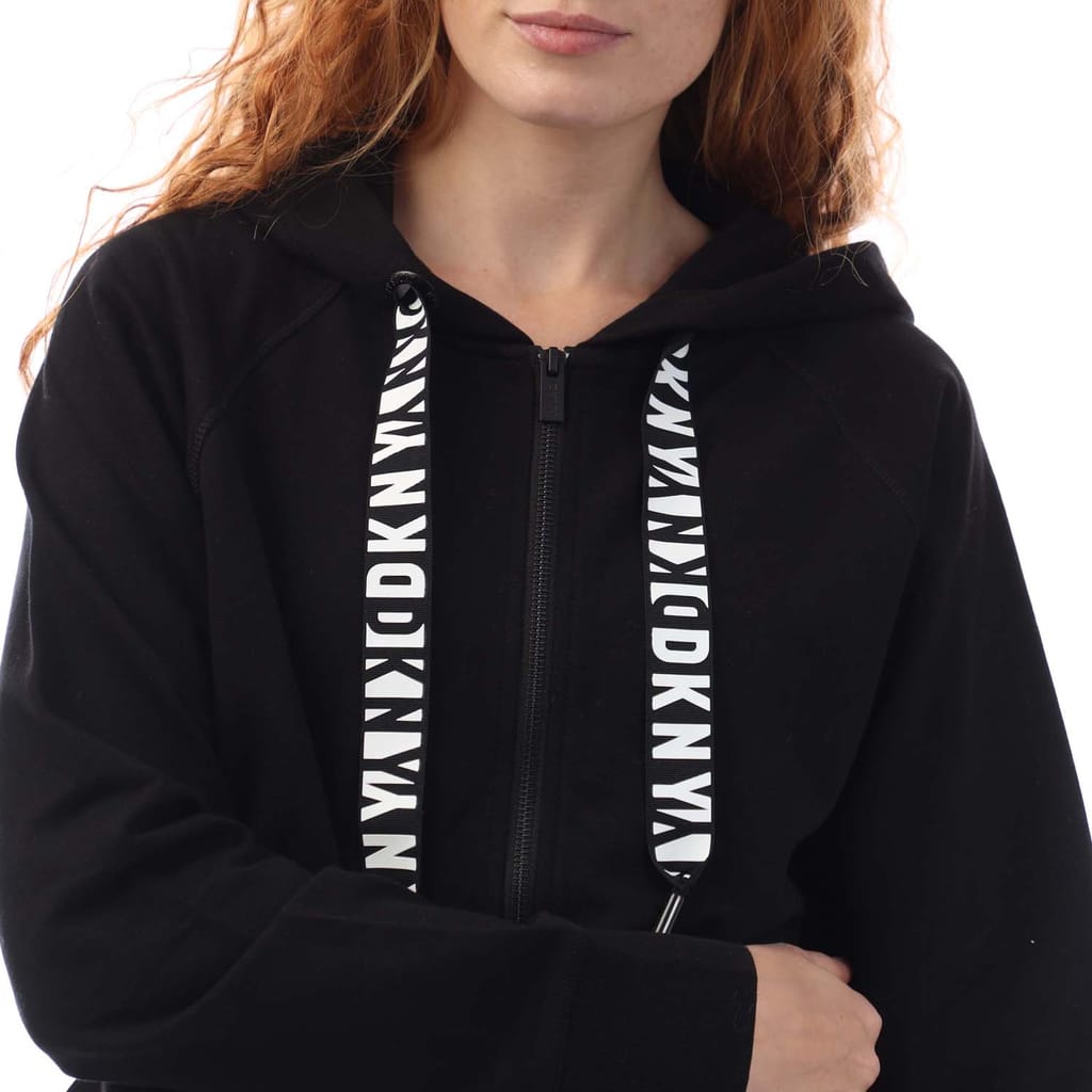 Womens DKNY Two Tone Logo Drawcord Hoodie in black.