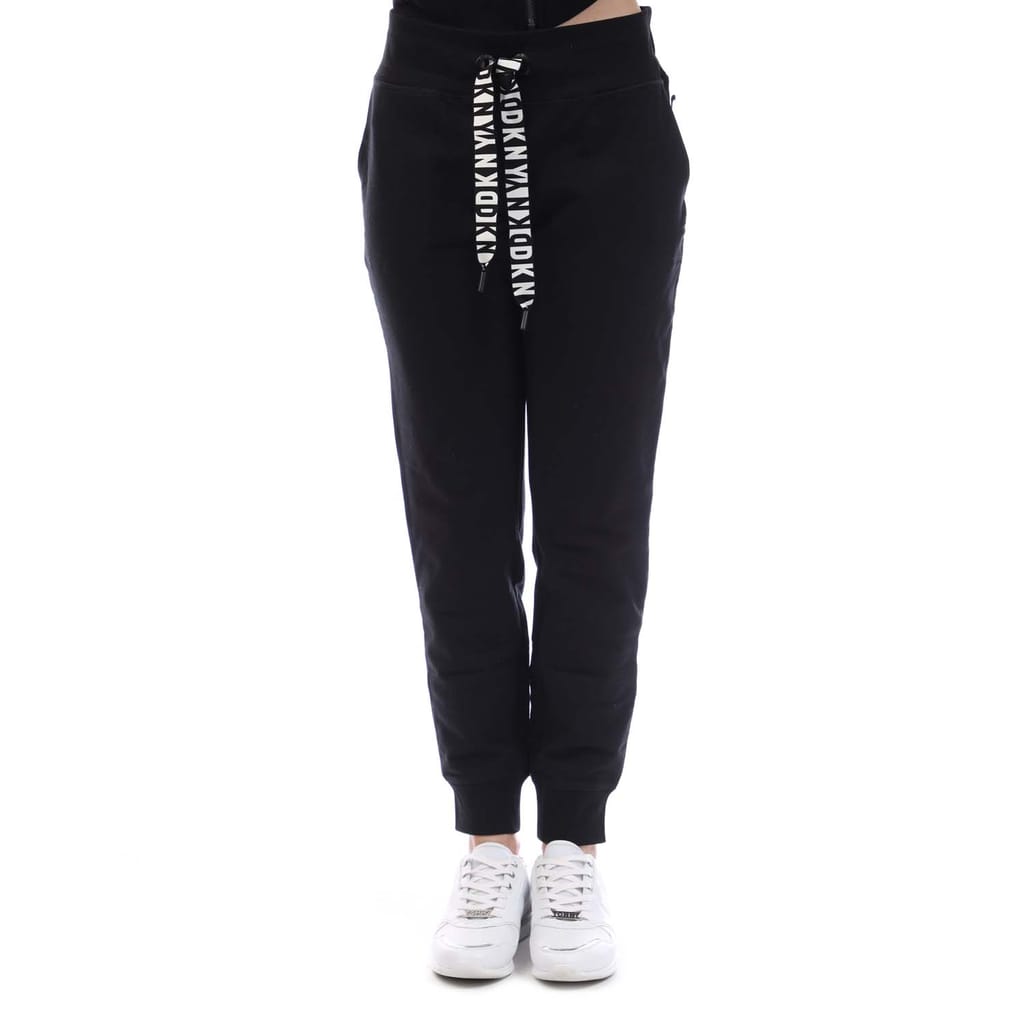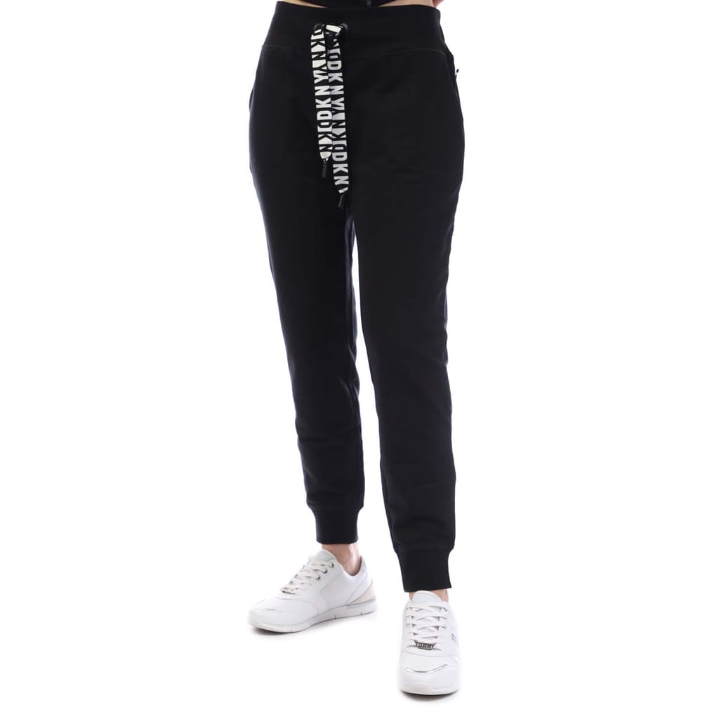 Womens DKNY Two Tone Drawcord Cuffed Jog Pants in black.