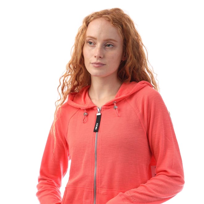 Womens DKNY Front Zip Through Slub Waffle Knit Hoodie in pink.