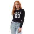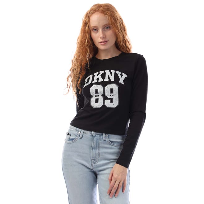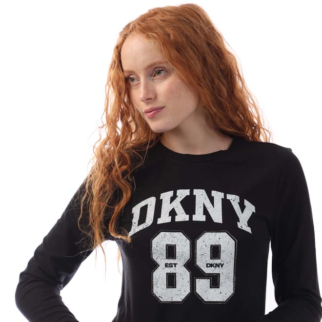 Womens DKNY 1994 Logo Fitted Long Sleeve T- Shirt in black-white.