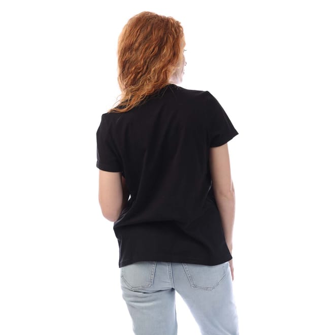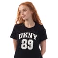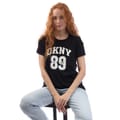 Womens DKNY Arched 89 Logo Crew Neck T- Shirt in black cream.