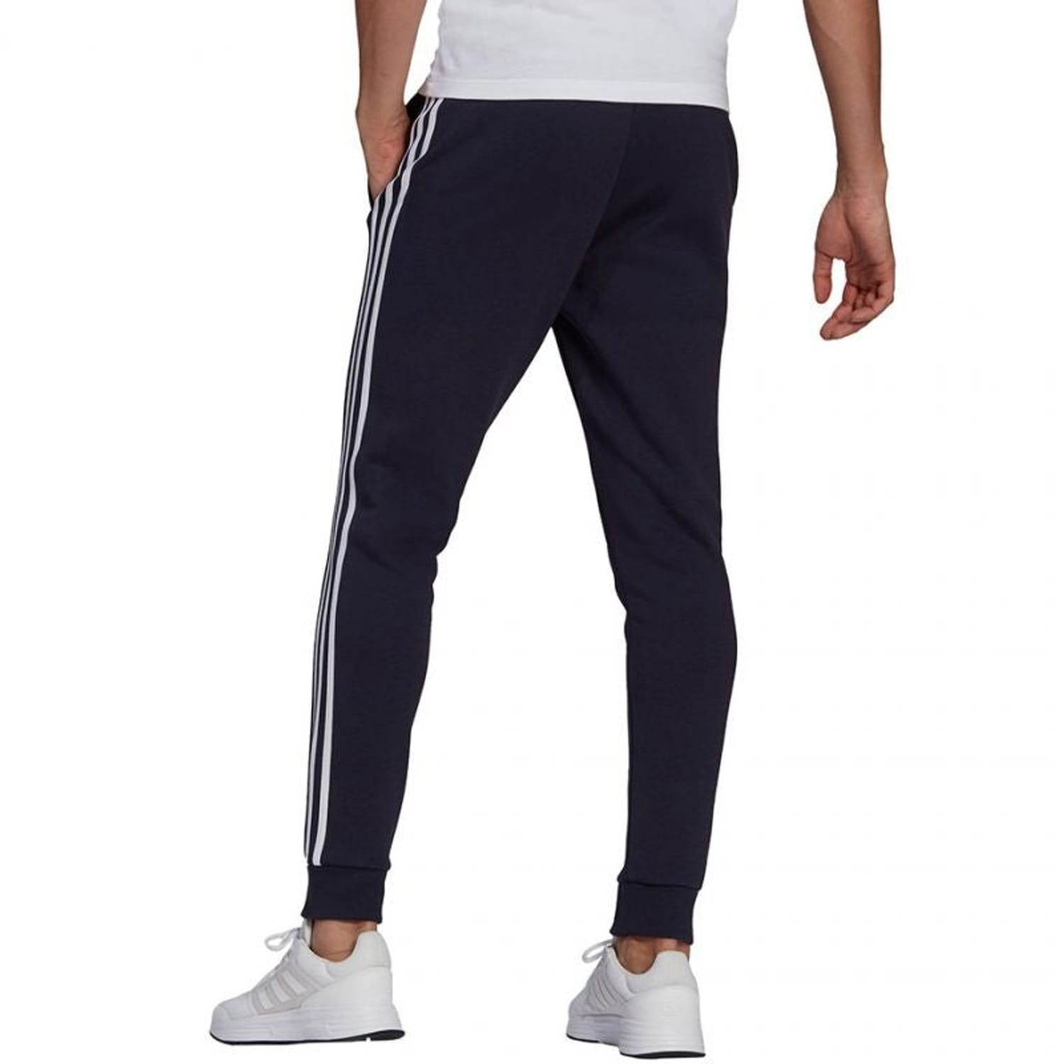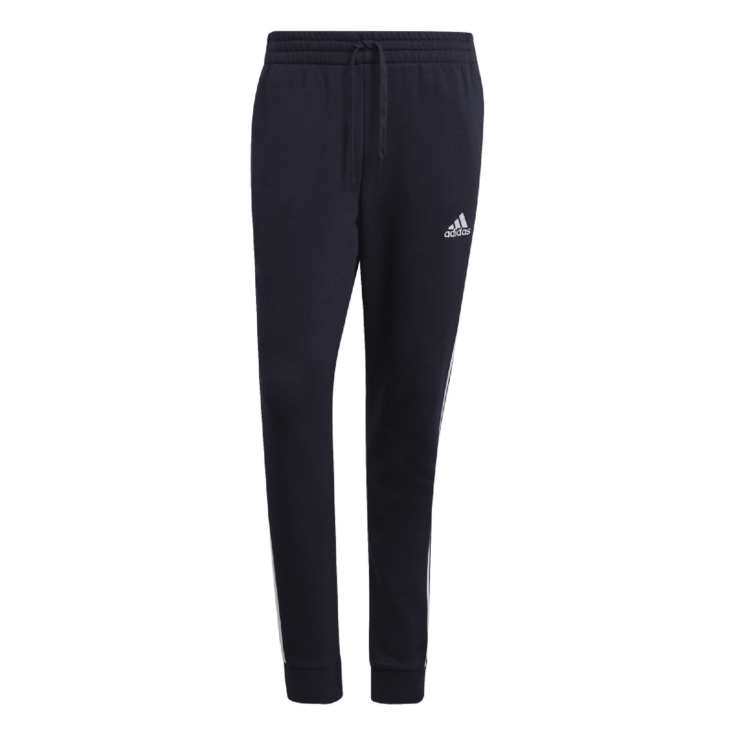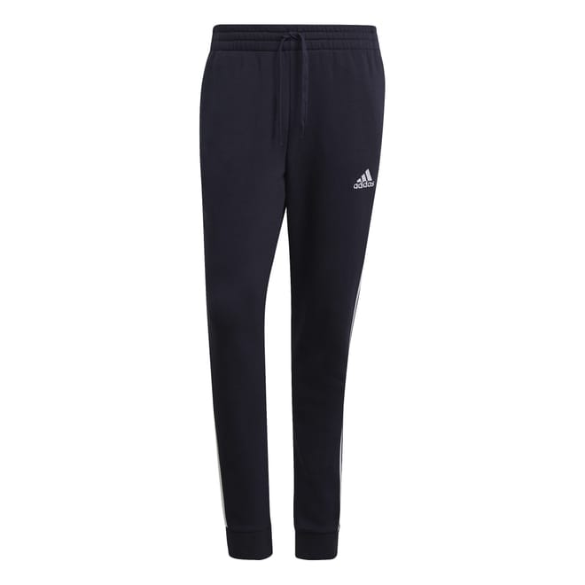 Mens adidas Essentials Fleece Tapered Joggers in navy / white.