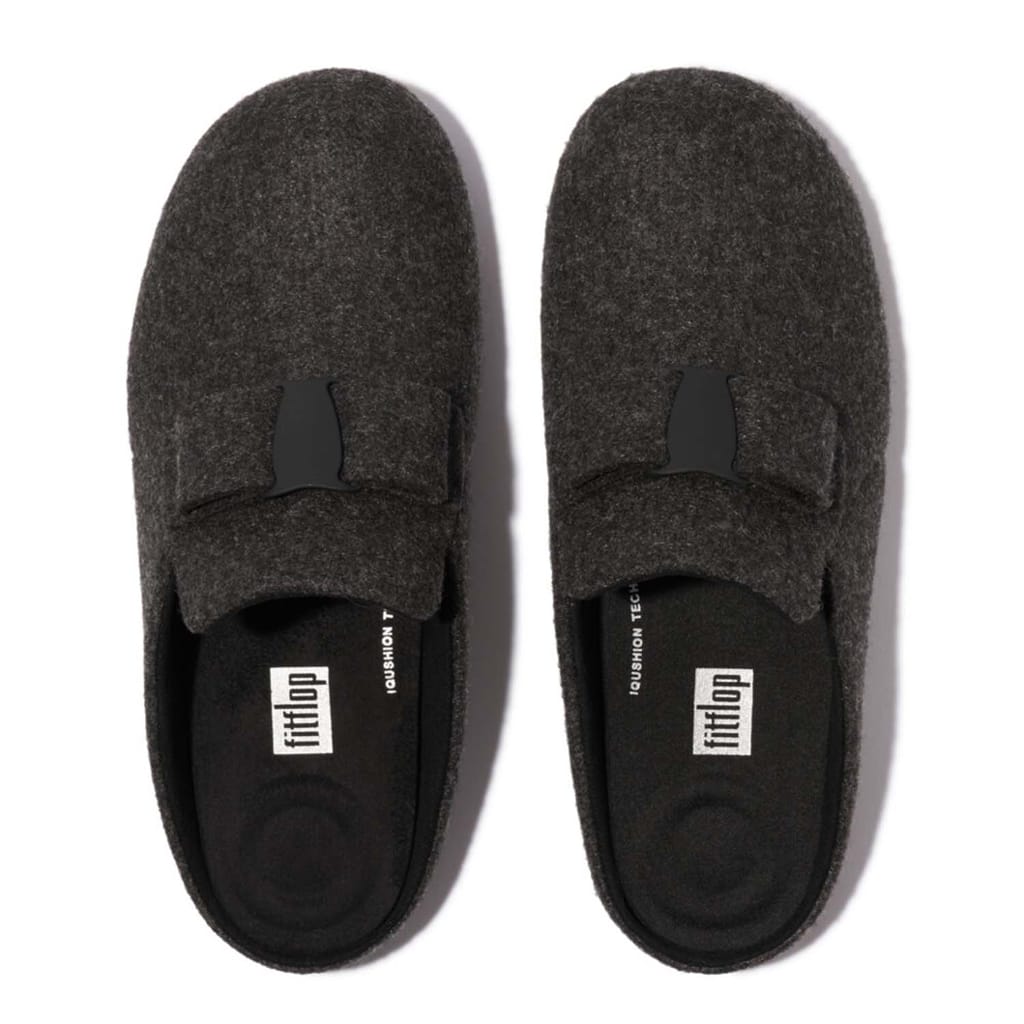 Womens Fit Flop Chrissie II Haus e01 Bow Felt Slippers in black.