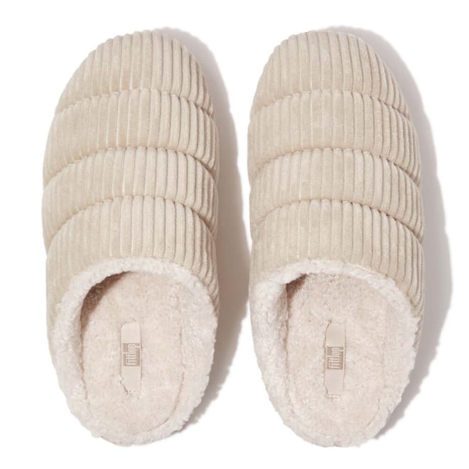 Womens Fit Flop Chrissie Fleece-Lined Corduroy Slippers in ivory