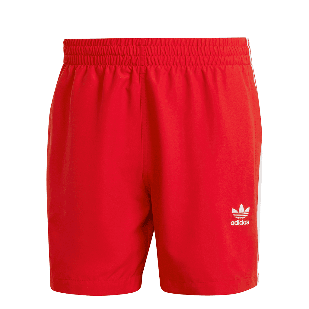 Mens adidas Originals Adicolor 3-Stripes Swim Shorts in better scarlet / white.