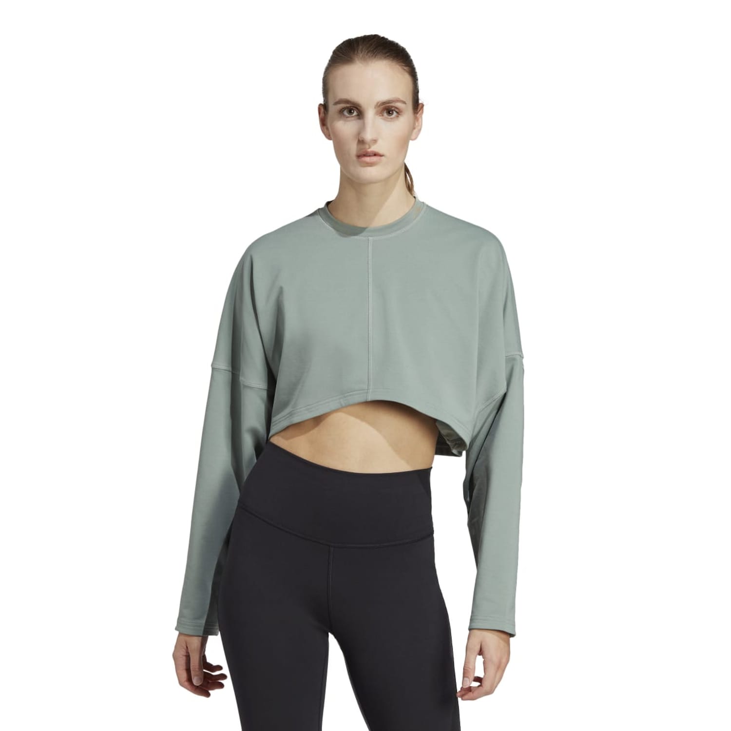 Womens adidas Yoga Studio Cropped Sweatshirt in green.