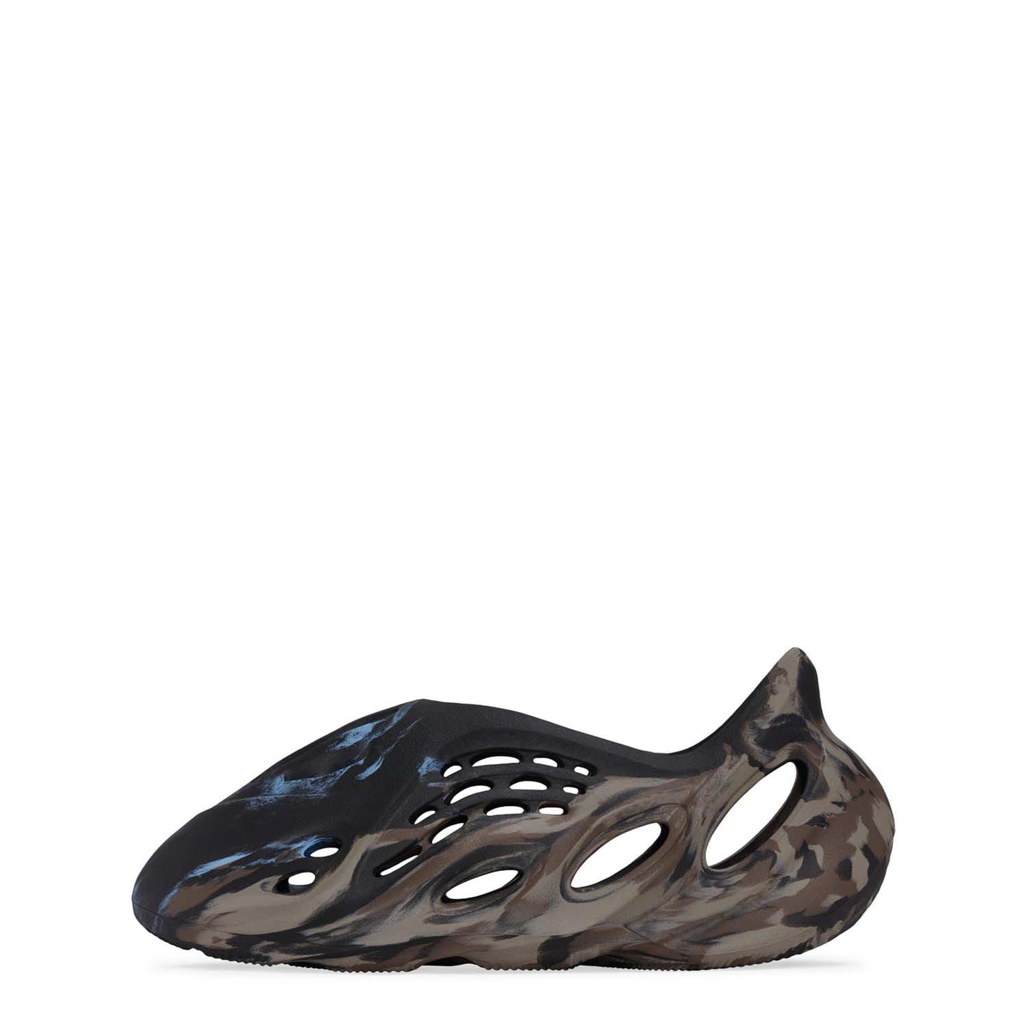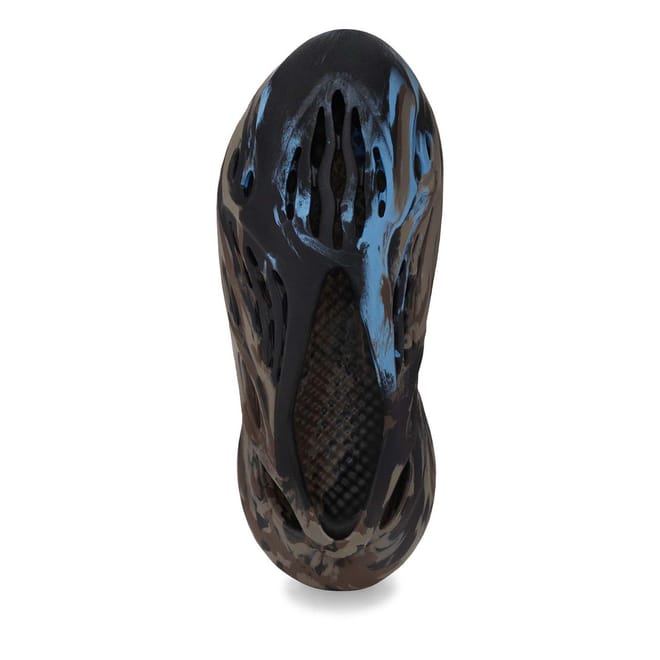 The adidas Yeezy Foam Runner ‘MX Cinder’ enlivens the slip-on silhouette with cooling splashes of color. Built with injected EVA foam, the one-piece upper is rendered in an earthy mix of brown and tan shades. Atop the vamp, a solid black finish is contrasted by unexpected bursts of aqua blue. A series of strategically mapped vents provide enhanced breathability, while the soft top layer of the footbed delivers step-in comfort. Underfoot, the contoured outsole features a wavy tread for optimal grip. -