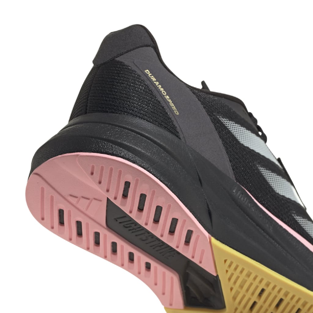 Womens adidas Duramo Speed Running Shoes in core black / zero metallic / spark.
