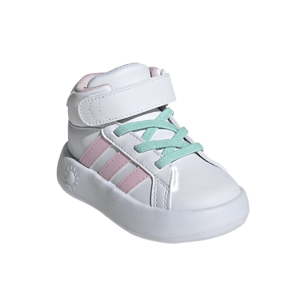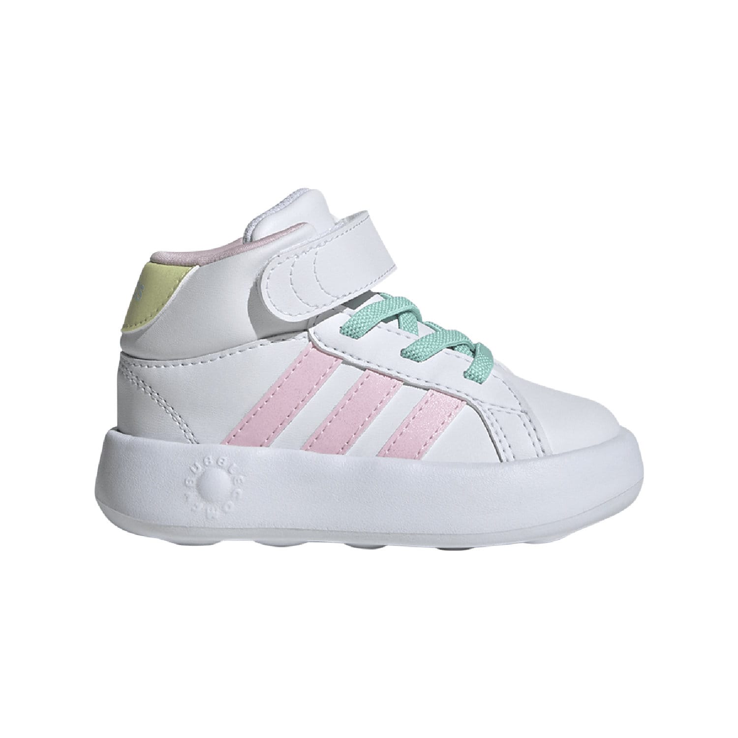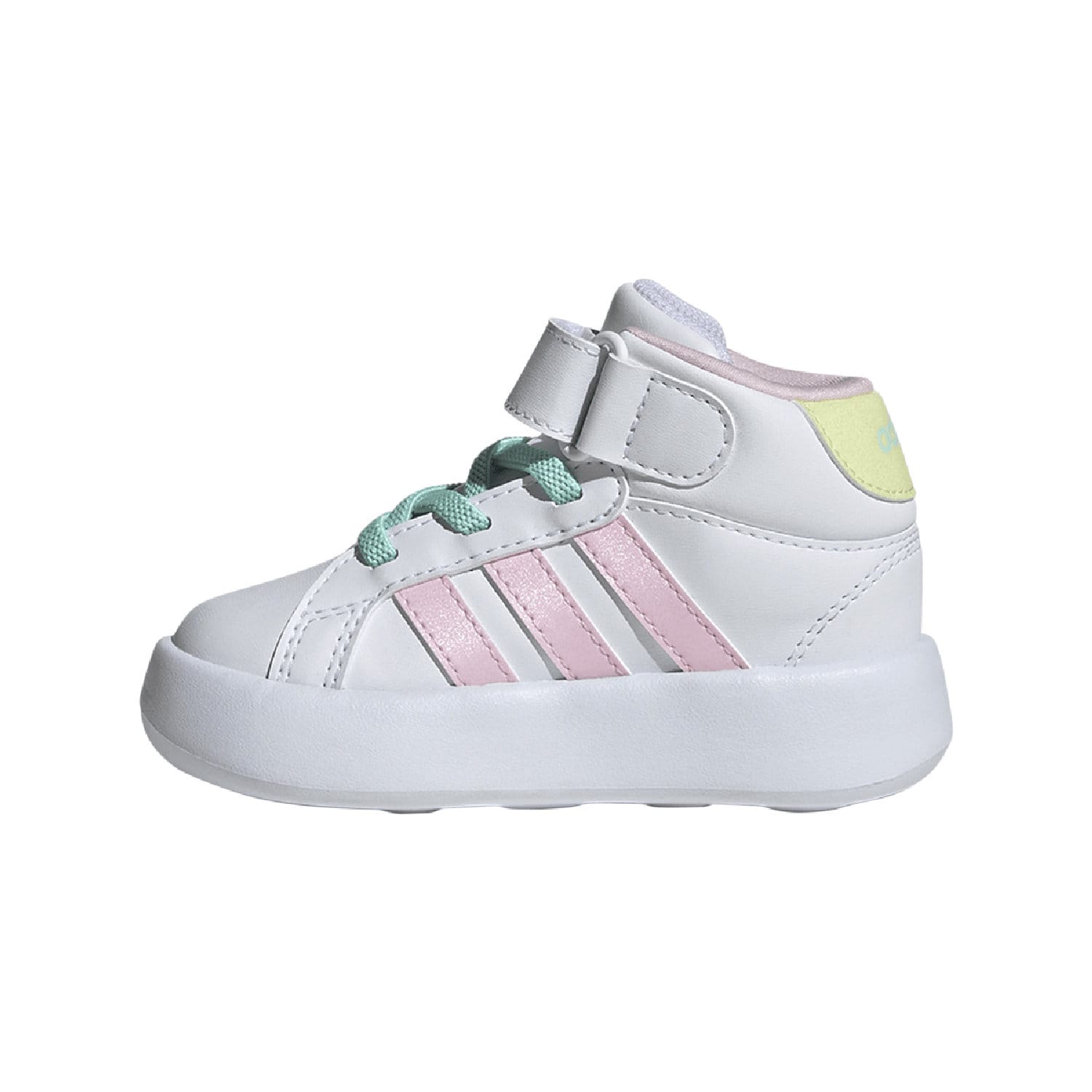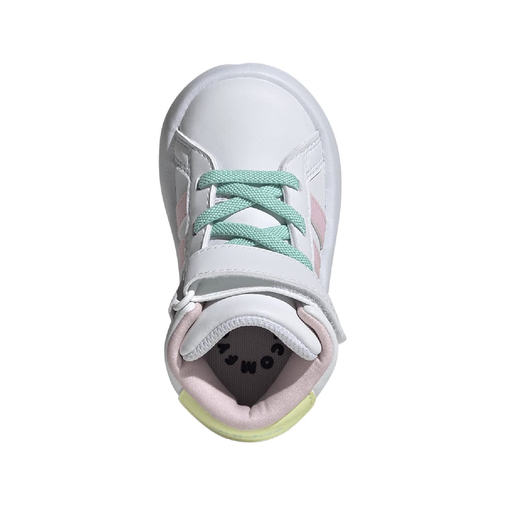 Infant adidas Grand Court Mid Shoes in cloud white / clear pink / ice yellow