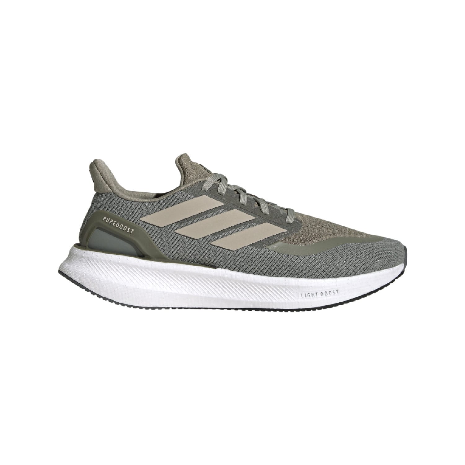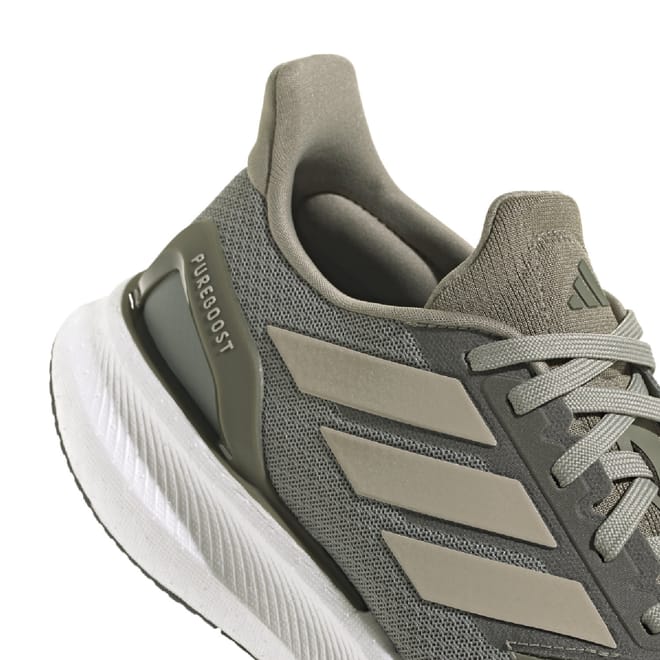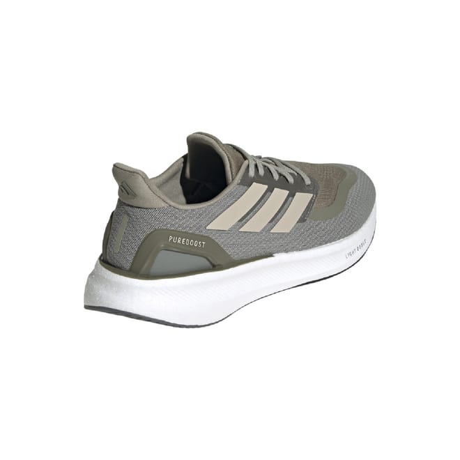 Mens adidas Pureboost 5 Running Shoes in silver pebble / wonder beige / olive strata.