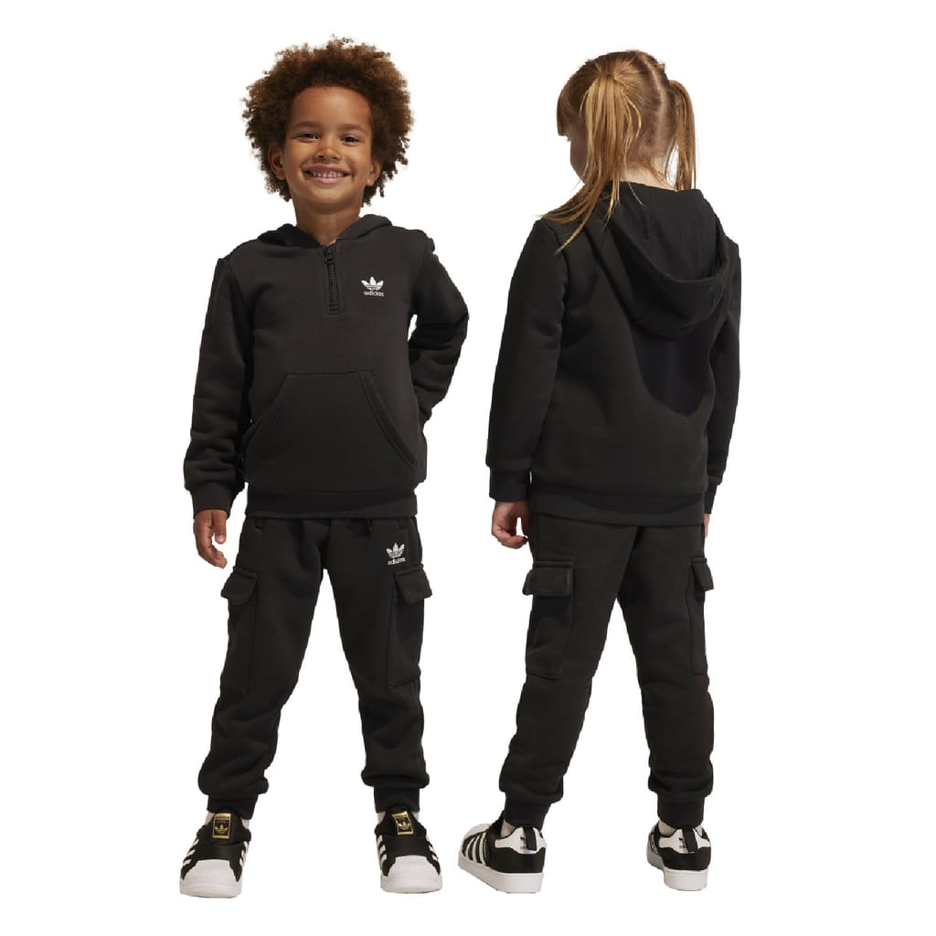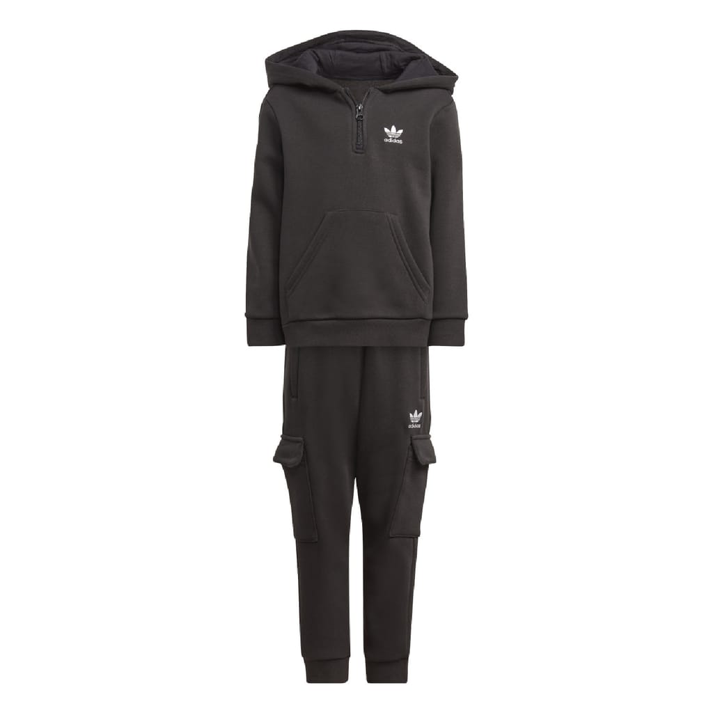 Infant adidas Originals Half-Zip Hoodie Cargo Pants Set in black.