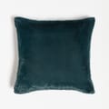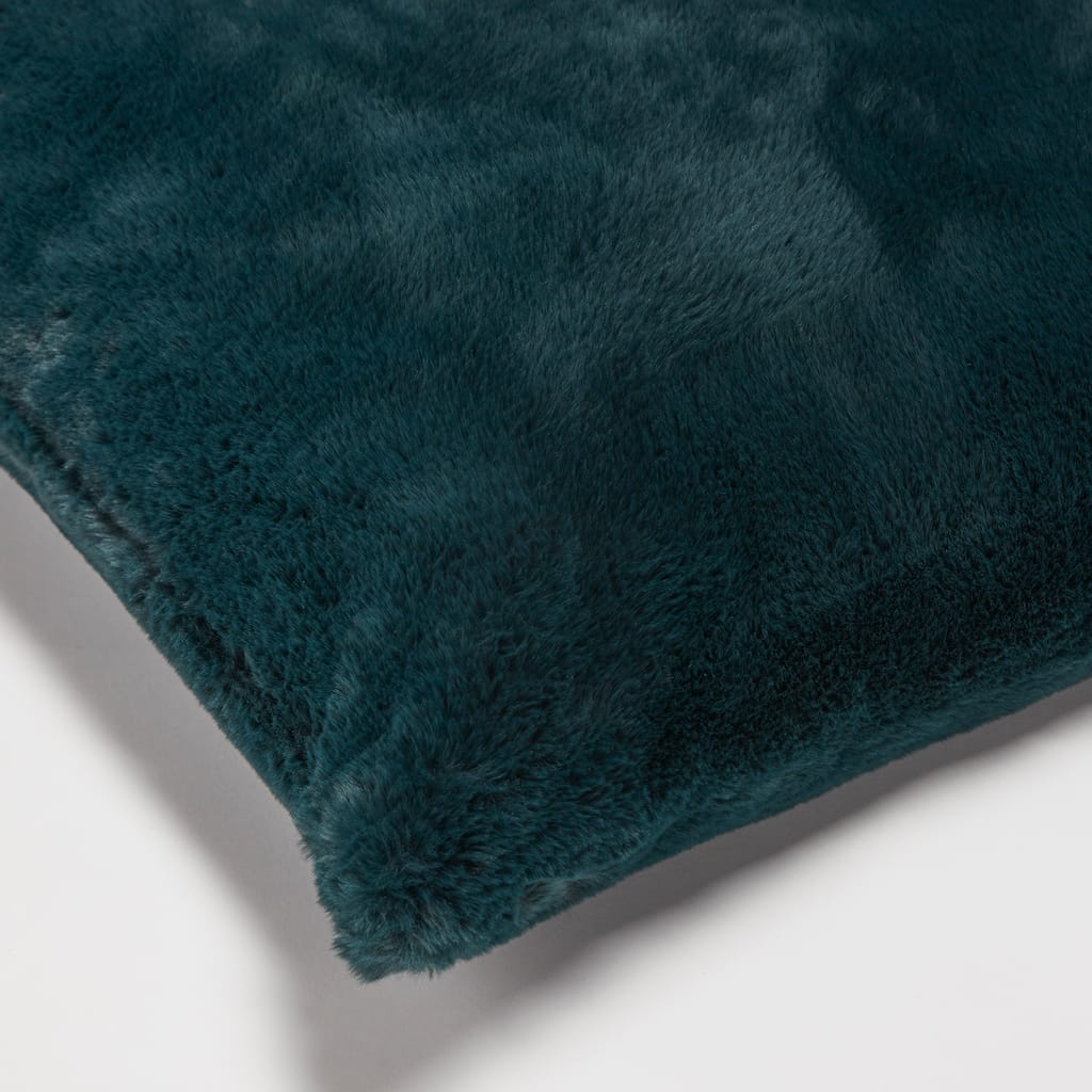 It is a square-shaped decorative pillow with a soft, fluffy texture. -