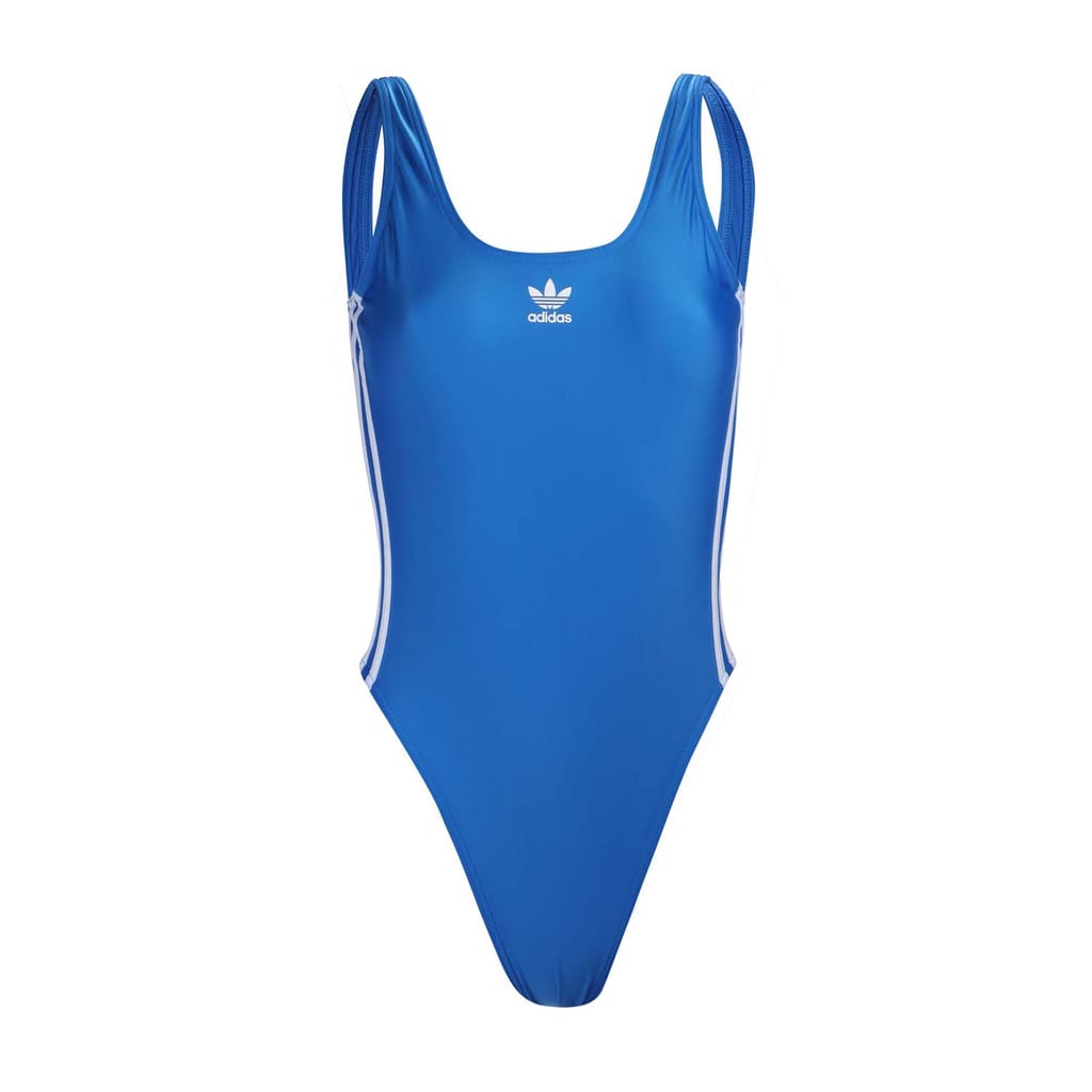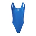 This swimsuit brings an authentic adidas spirit to beach outings and pool parties. Whether hitting the waves or strolling across the deck, smooth tricot keeps you comfortable, and a small Trefoil logo on the front signals your connection to the legacy of sport. This product is made with at least 70% recycled materials. A swimsuit with 3-Stripes style, made in part with recycled materials. Deep U-back Heat-transfer Trefoil logo 78% recycled polyester, 22% elastane tricot -