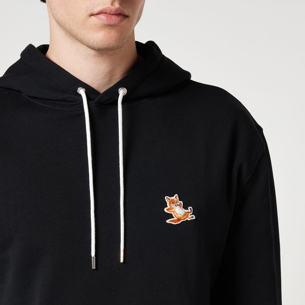 It is made from 100% cotton fleece and features a classic fit, a kangaroo pocket, and a drawstring hood. The Chillax Fox patch is embroidered on the breast. -
