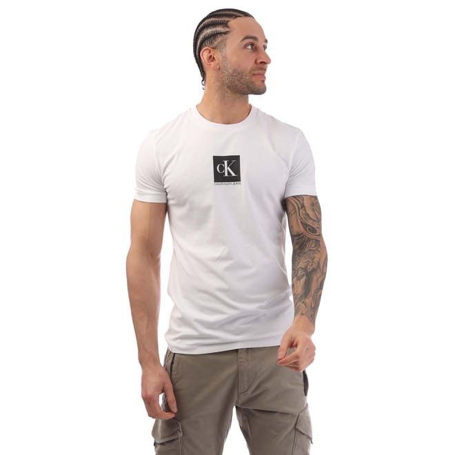 Mens Calvin Klein Jeans Slim Organic Cotton Logo T-Shirt in bright white.