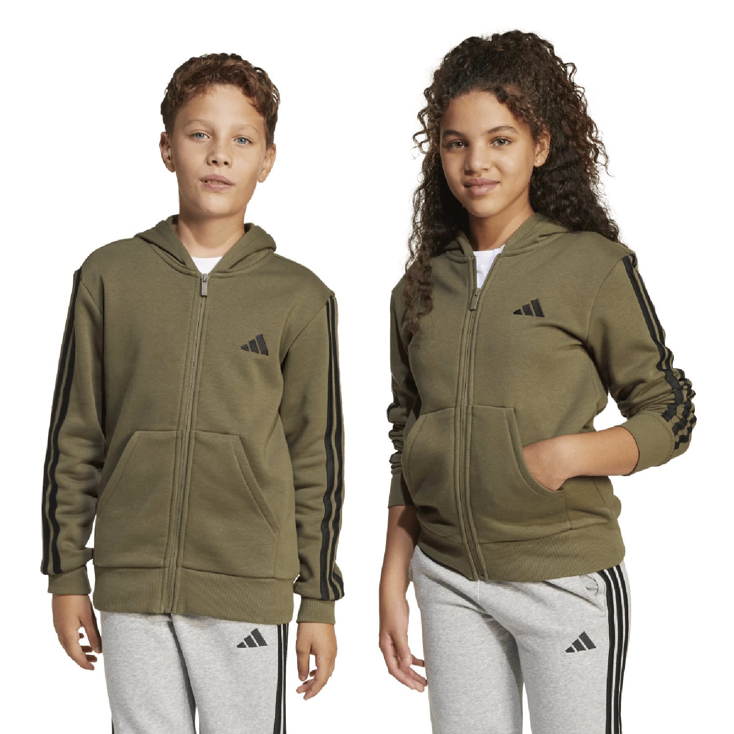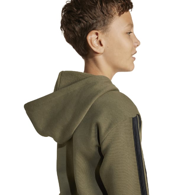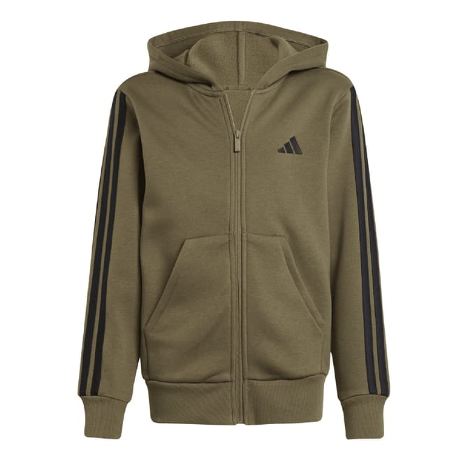 Junior adidas Essentials Full-Zip Hoodie in olive strata / black