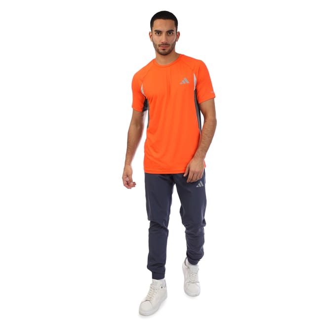 It features a classic round collar and short, raglan-cut sleeves for easy movement, and is finished with reflective detailing and signature adidas branding to the chest. -