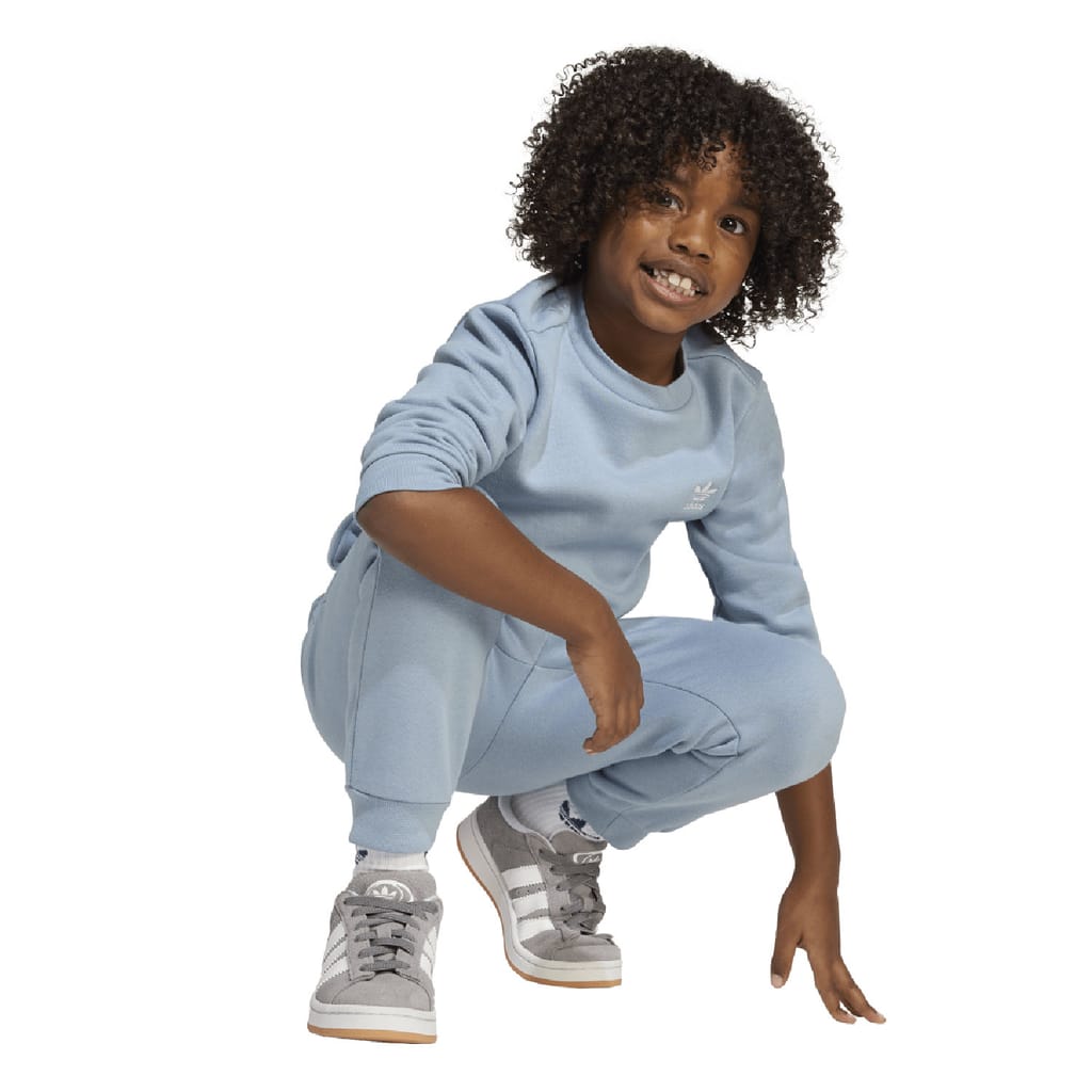 Effortless comfort for young adidas fans. This kids' crew set wraps them in soft fleece from head to toe, and has ribbing on the collar, hem and cuffs for extra cosiness. Contrast-colour Trefoil logos on the sweatshirt and pants nod to adidas heritage, connecting a new generation to a legacy of sport and style.