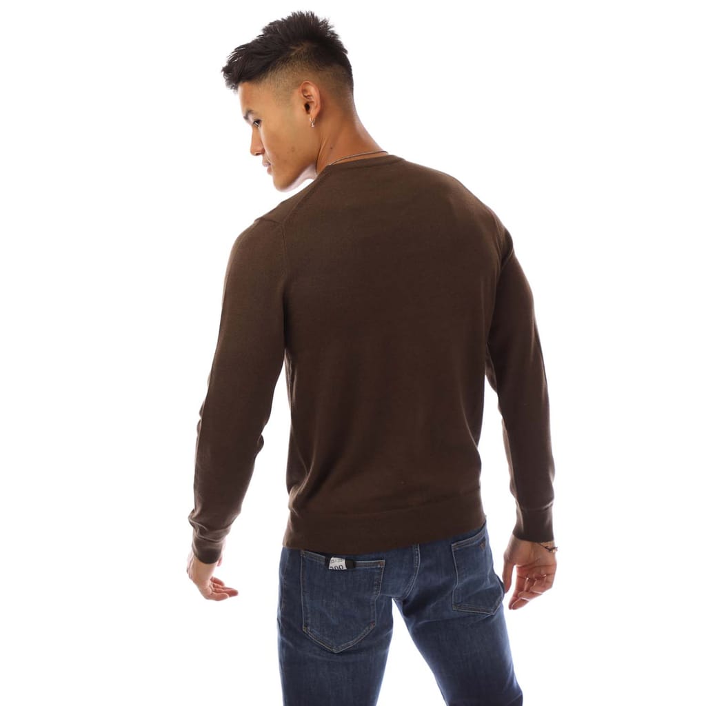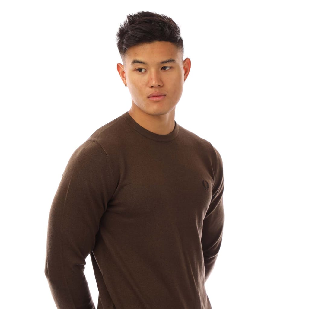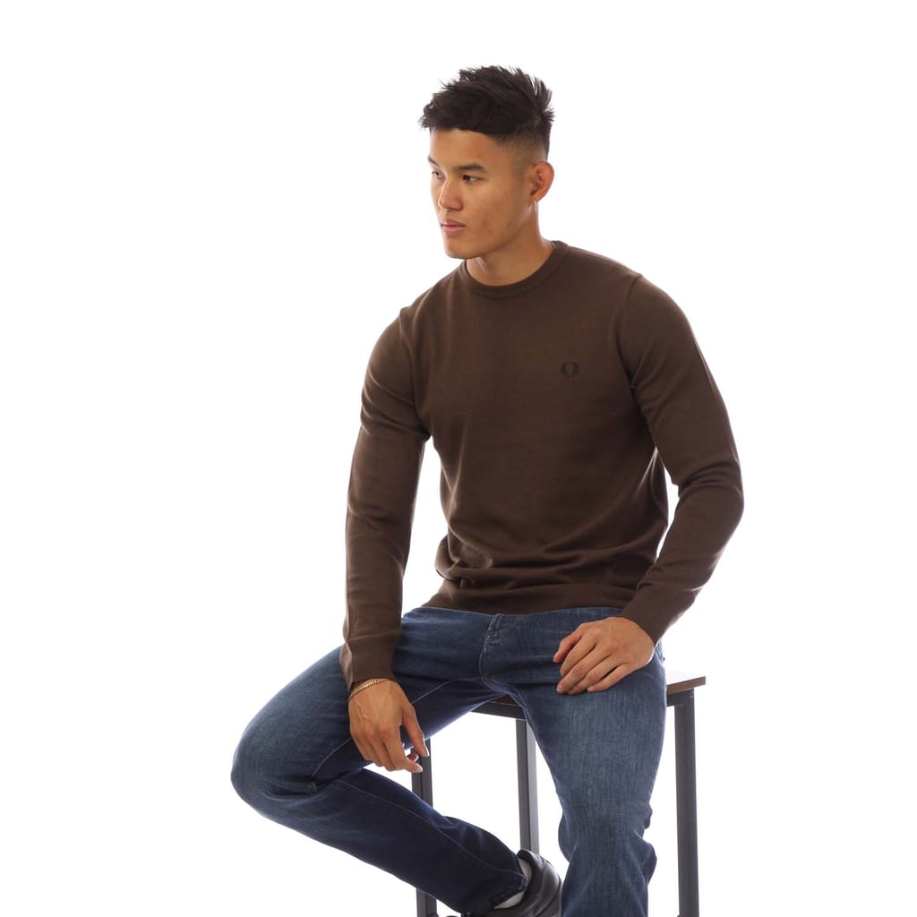 Mens Fred Perry Classic Crew Neck Jumper in brown.