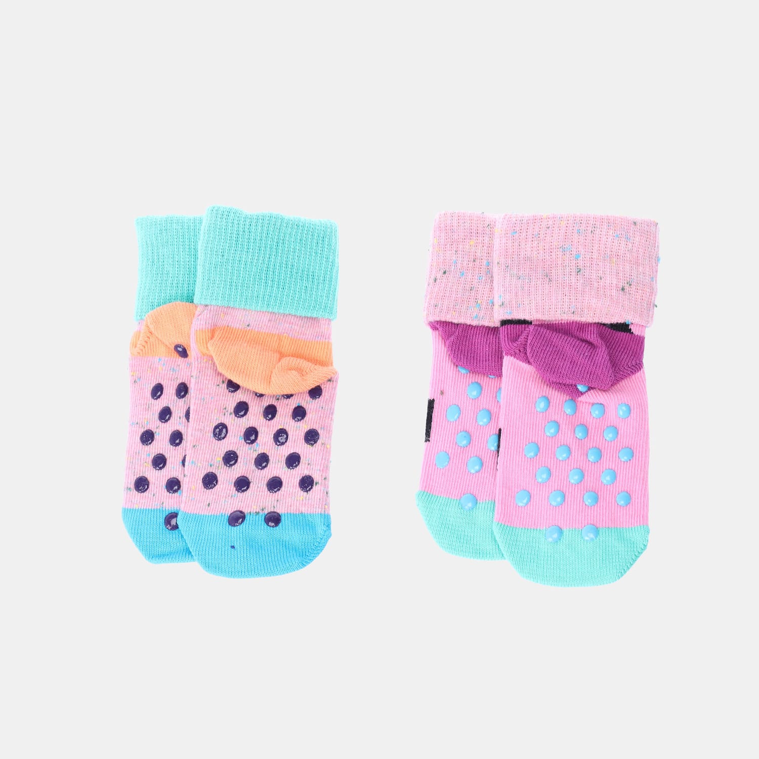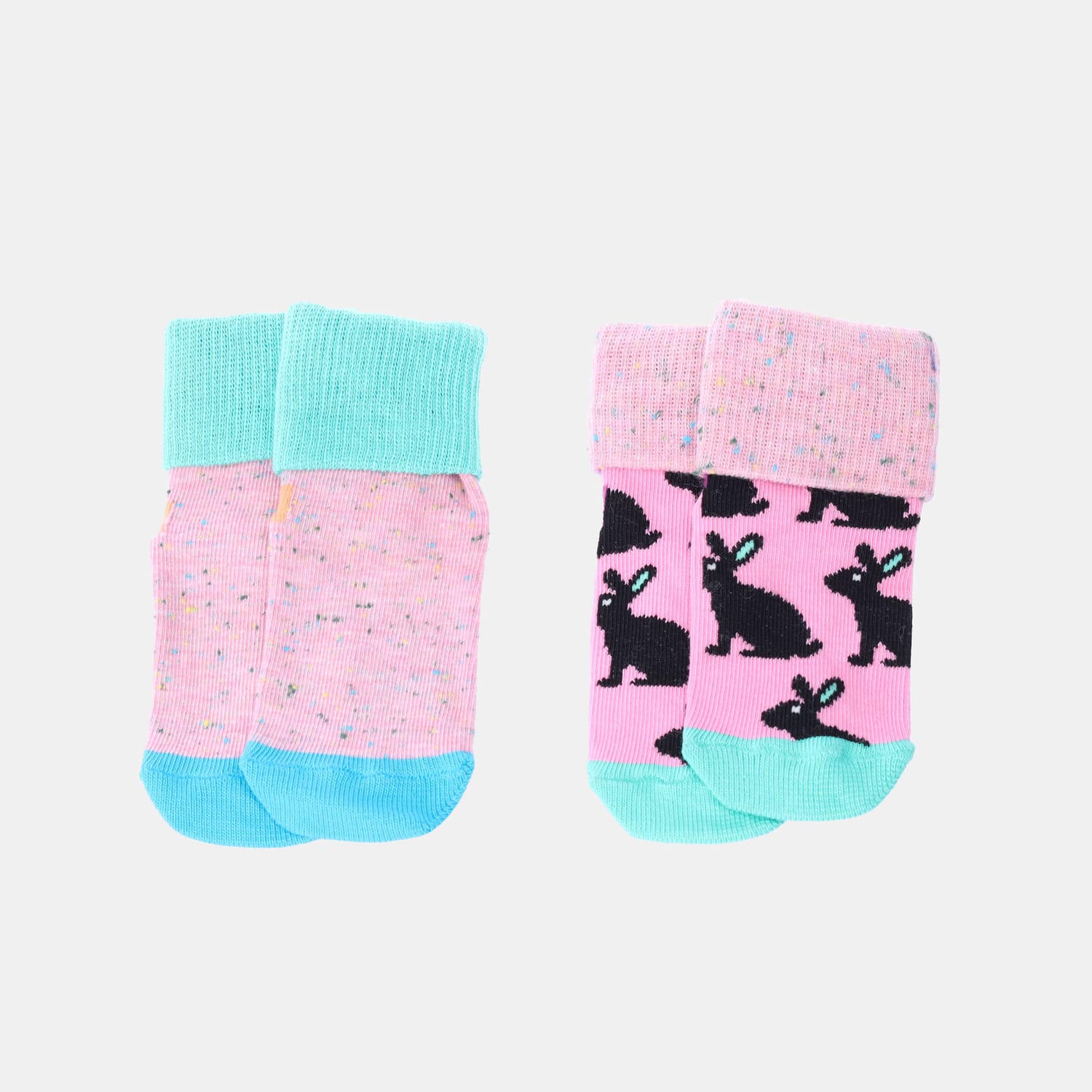 Infants Happy Socks 2 Pack of Bunny Anti-Slip Socks in pink.