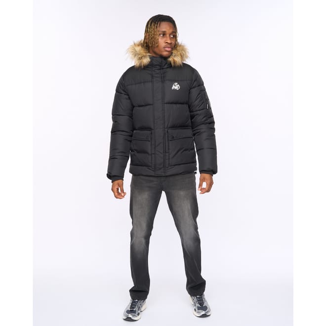 Mens Kings Will Dream Curvlay Parka Jacket in black.