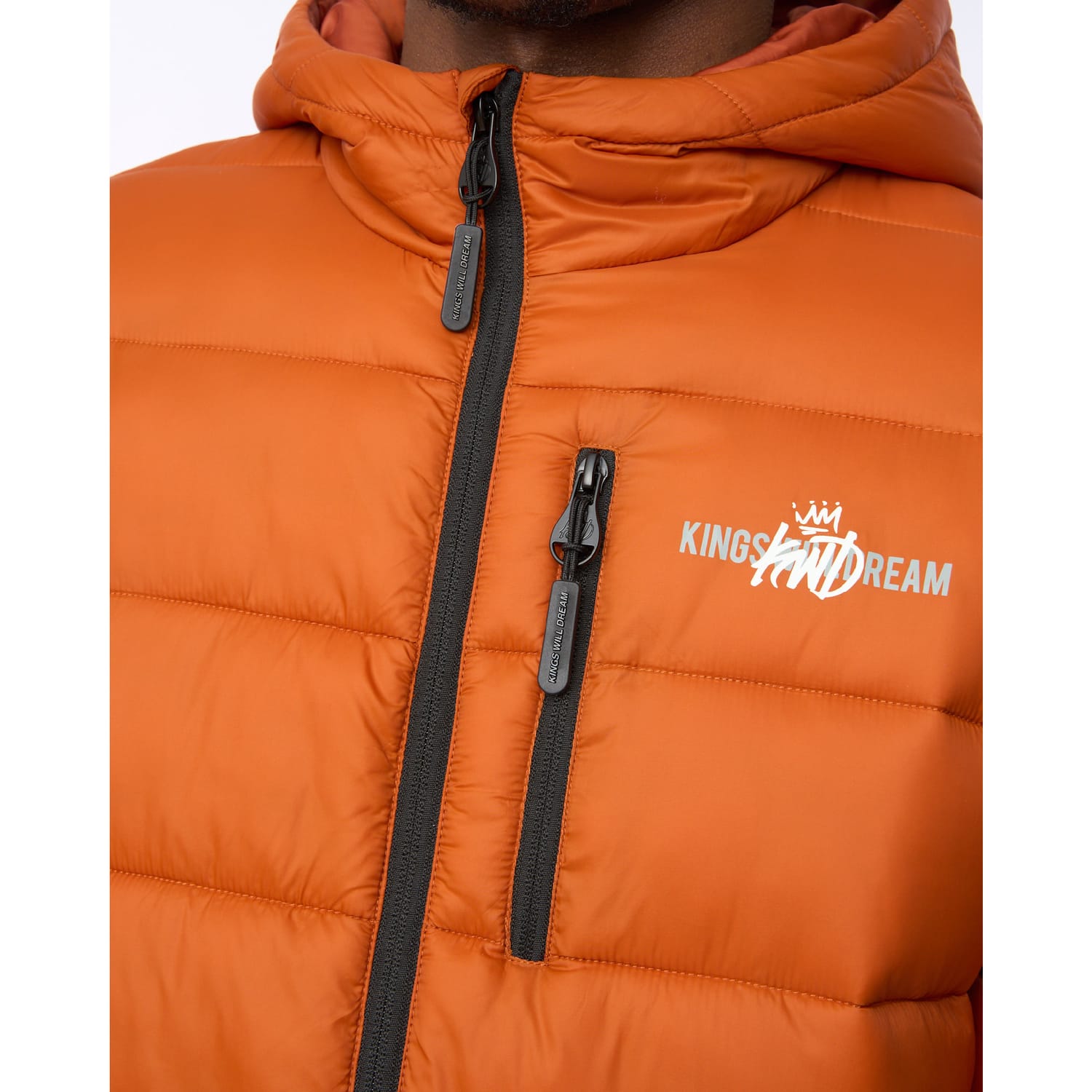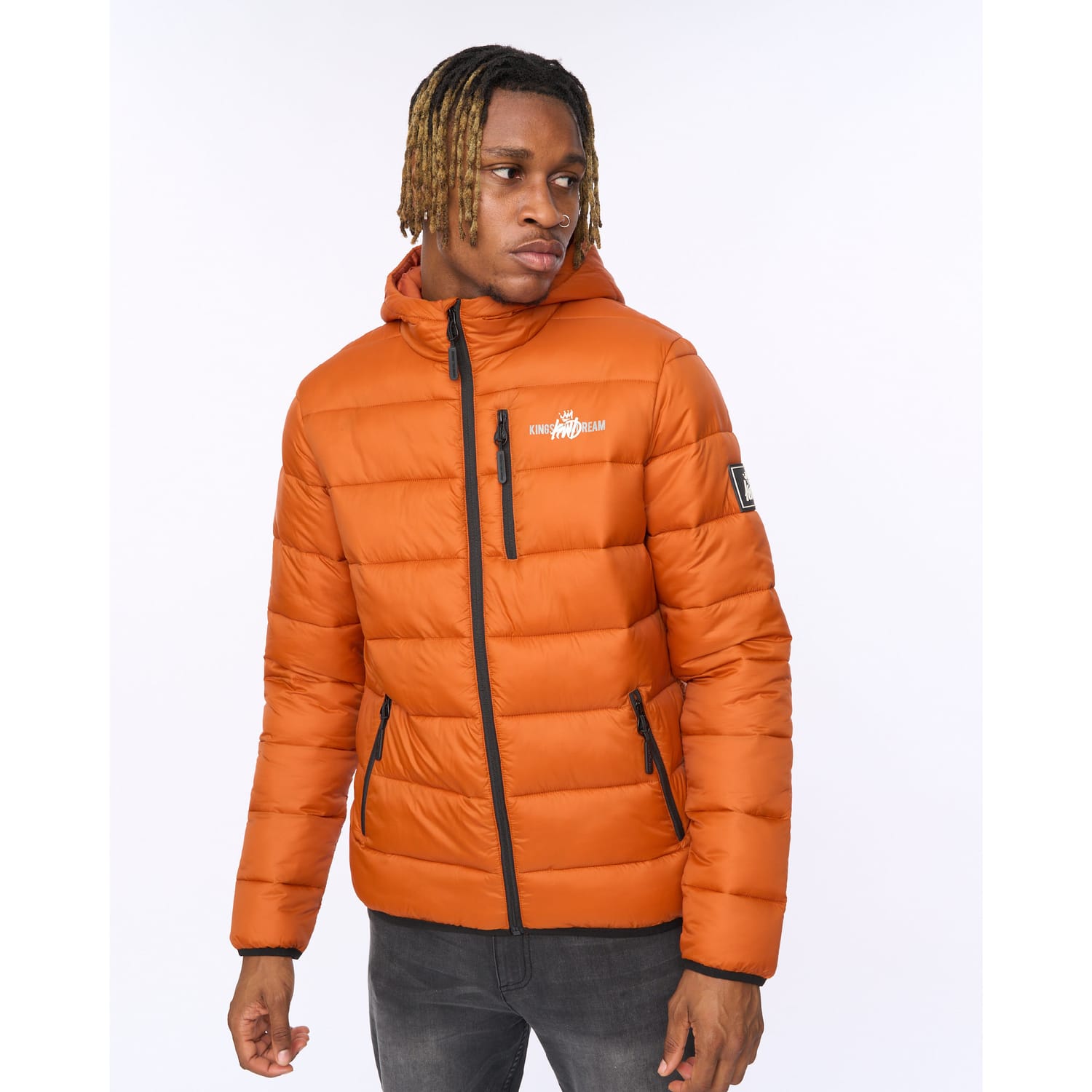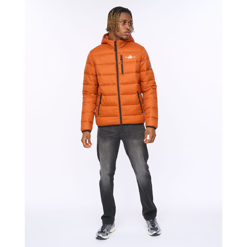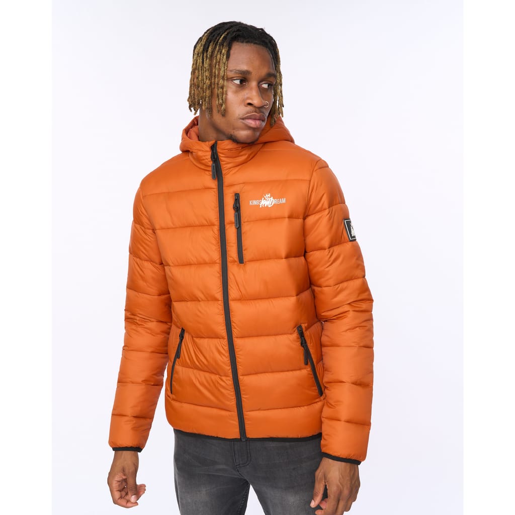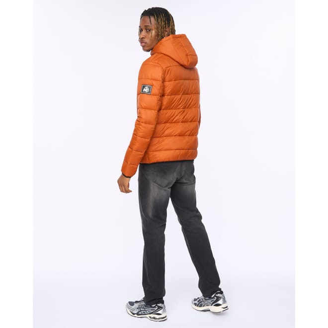 "The Barcana Puffer Jacket Orange delivers padded warmth with a clean finish. Statement quilt pattern Fixed hood with chin guard Zip-through front Zipped hand pockets Soft padded lining Fabric: 100% Polyester" -