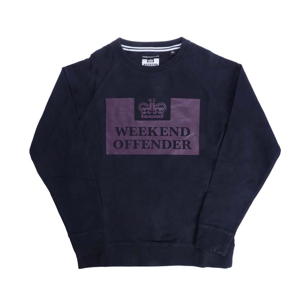 Ribbed crewneck. Ribbed cuffs and hem. Large chest branding. Regular fit. -