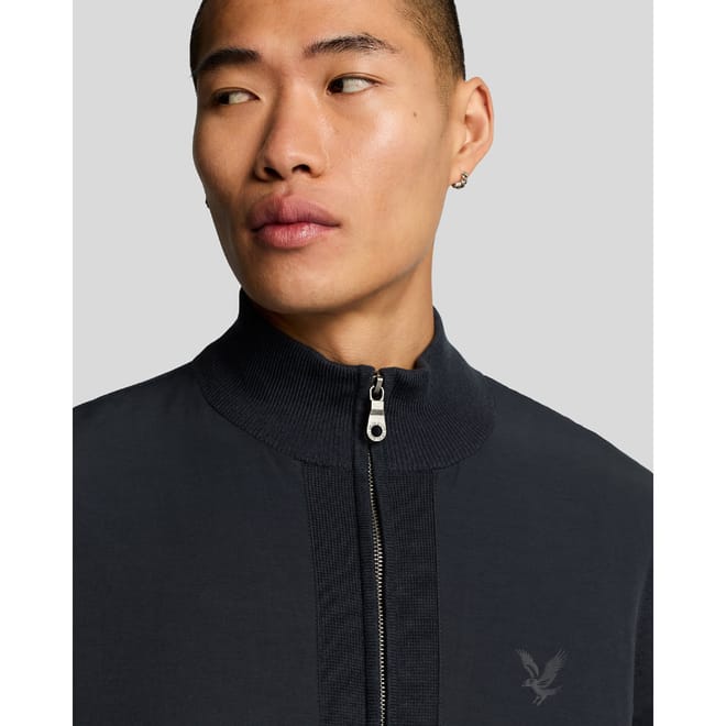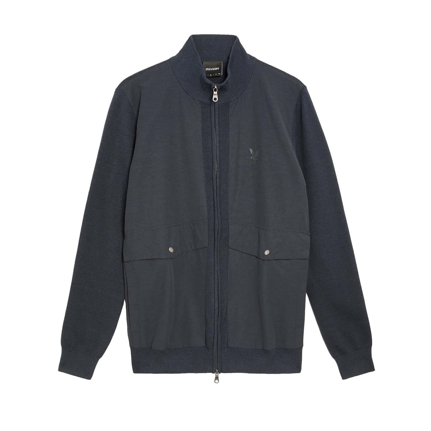 Mens Lyle and Scott Milano Hybrid Full Zip Knitted Jacket in dark navy