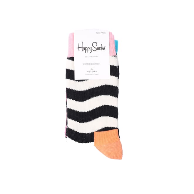 Infants Happ Socks 2 Pack of Wavy Stripe Socks in black.