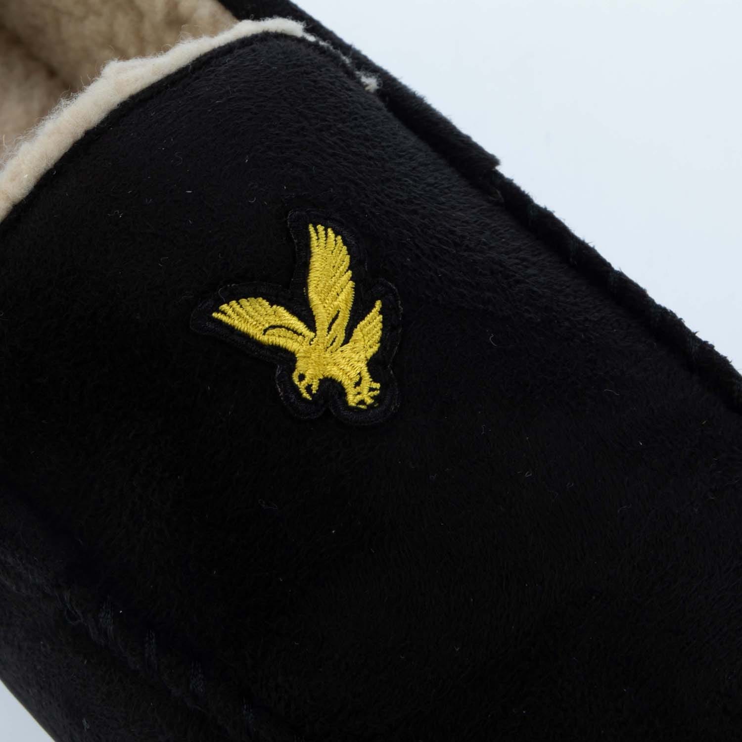 Mens Lyle And Scott Aspen Moccasin Slippers in black.