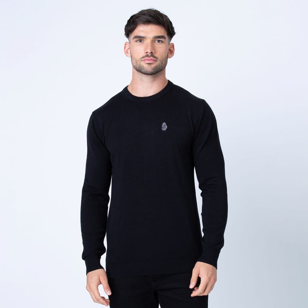 Mens LUKE 1977 Radon Crew Neck Sweater in blackThis time-less LUKE long sleeve knitted jumper is a perfect addition to your wardrobe to transition through seasons, it boasts an exceptionally soft pure cotton knit from its crew neck to cuff, finished with the brands iconic black, pewter, red embroidery on the left chest.