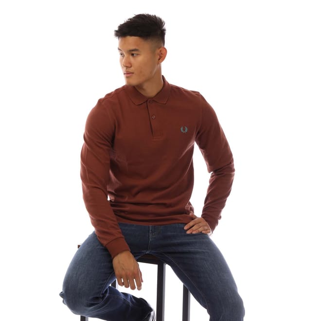 Mens Fred Perry Long Sleeve Plain Polo Shirt in brown.