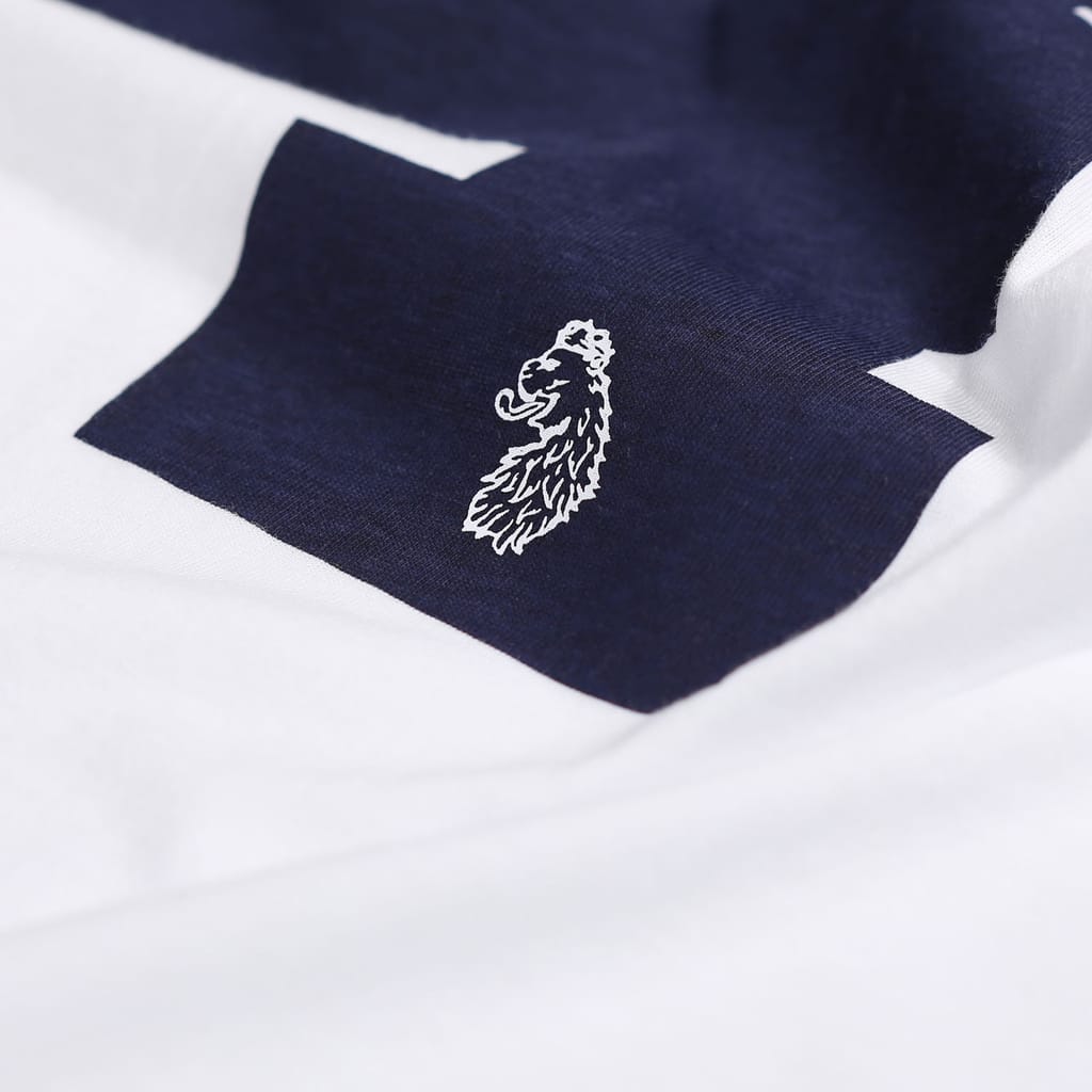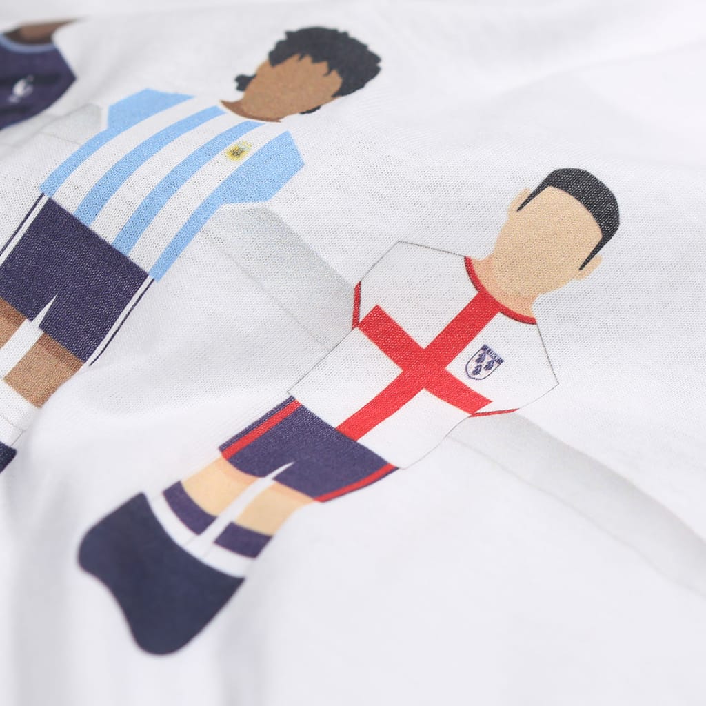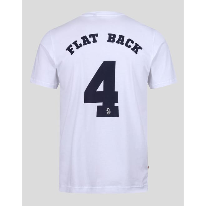 "Step it up like your idols in this football inspired tee from LUKE. Crafted from pure cotton, it has a soft ribbed crew neck and features printed football figures on the front. It is complete with a FLAT BACK 4 print on the back.