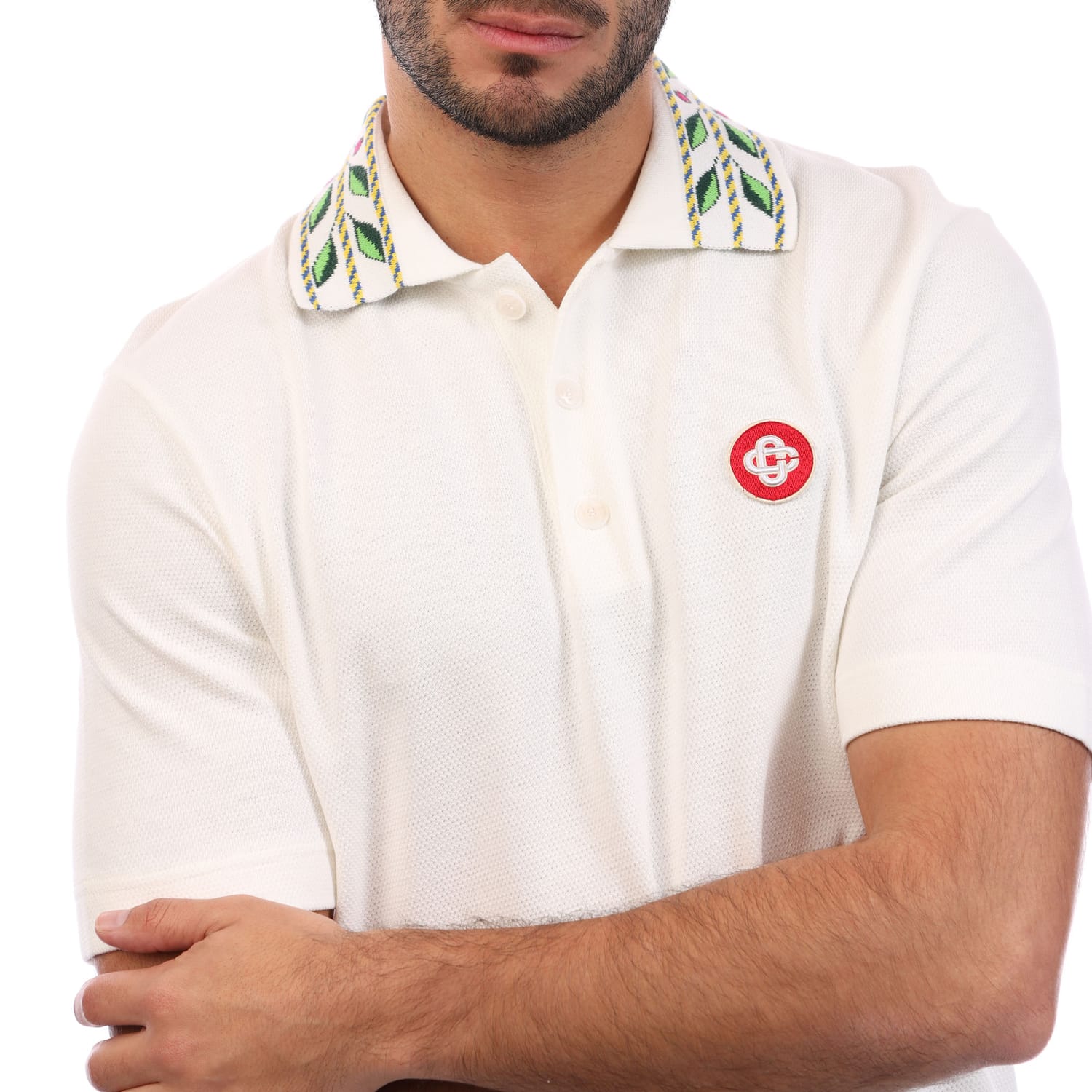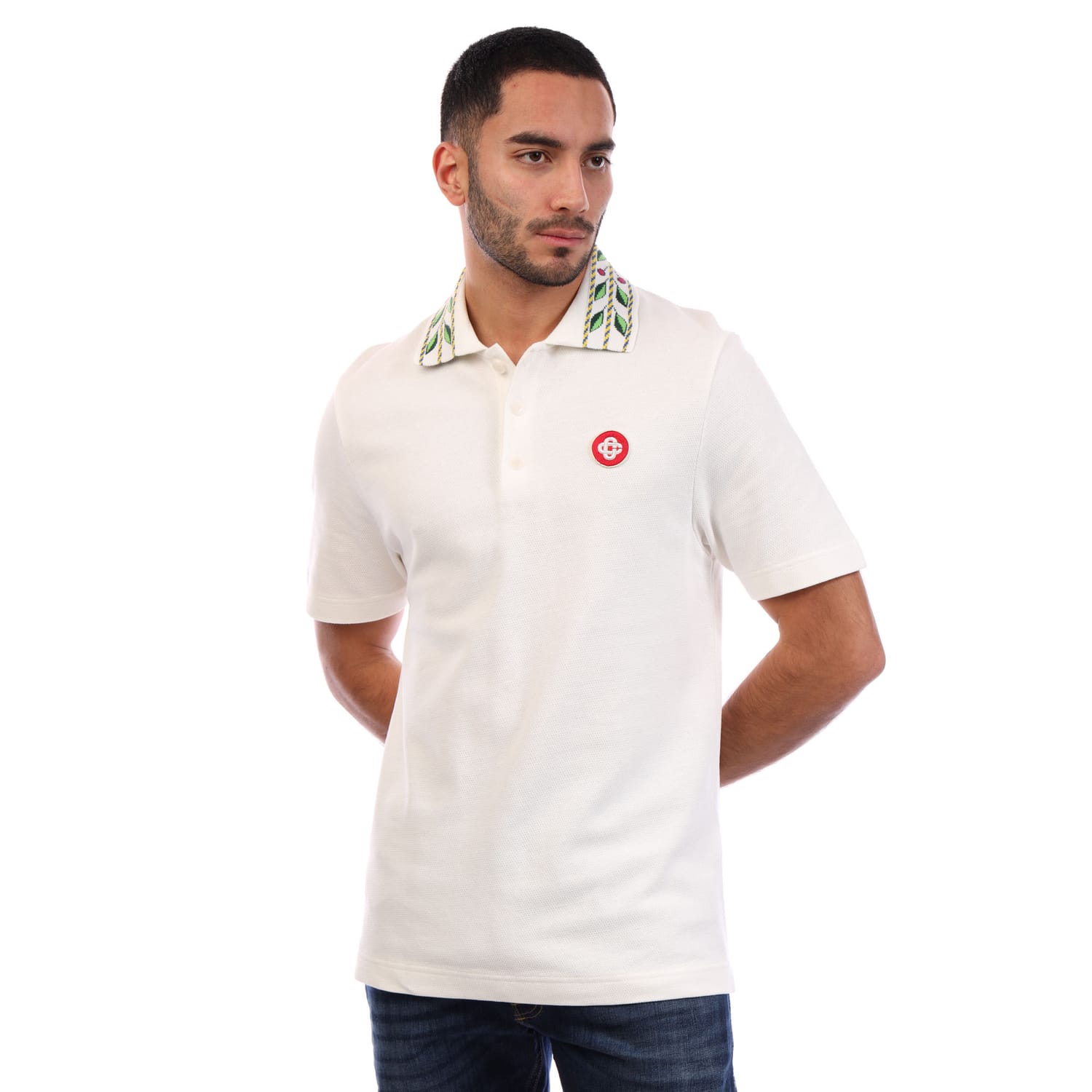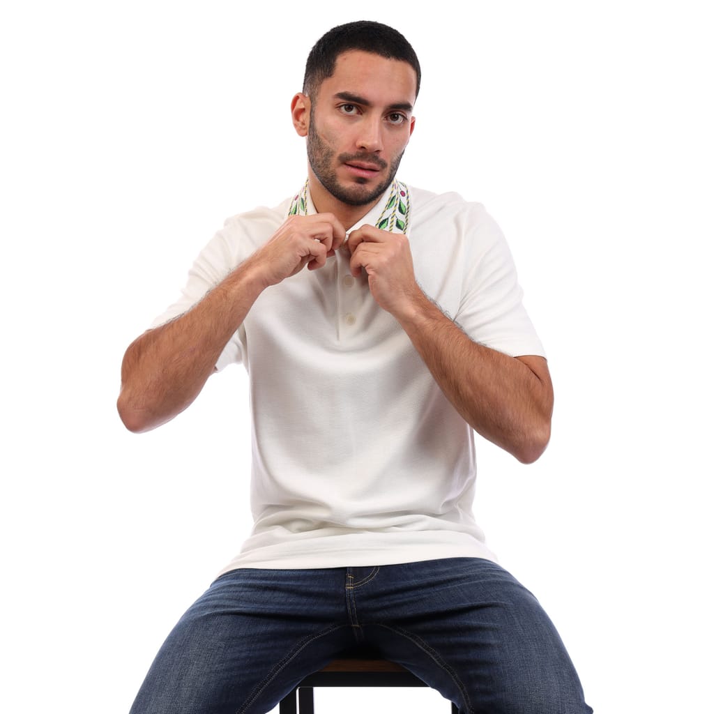 Mens Casablanca Classic Laurel Pique Polo Shirt in white.