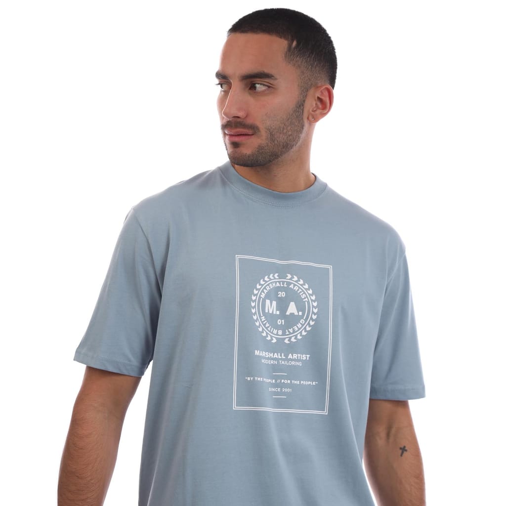 Mens Marshall Artist Cartellino T- Shirt in blue.