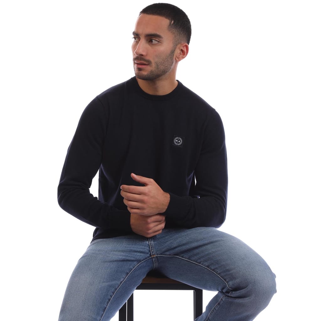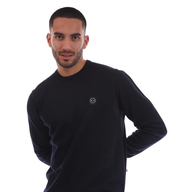 Mens Marshall Artist Siren Crew Knit Sweater in navy.