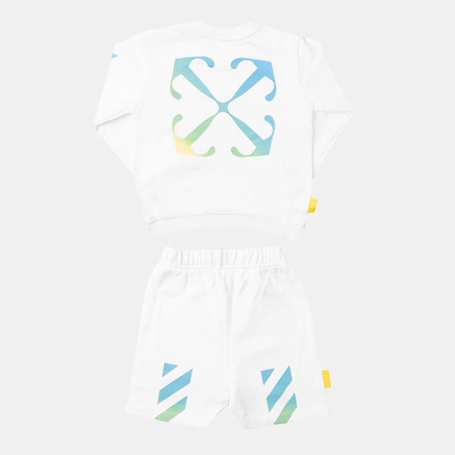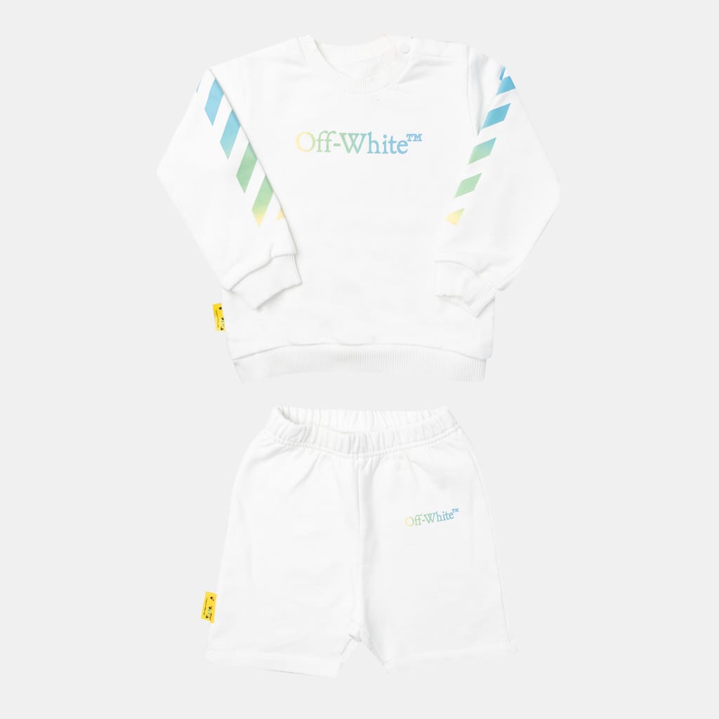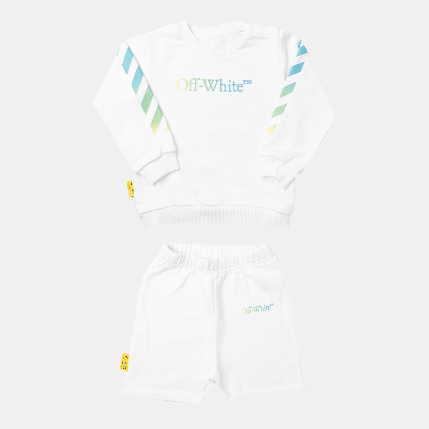 Infants Off White Rainbow Arrow Sweat Set in white.